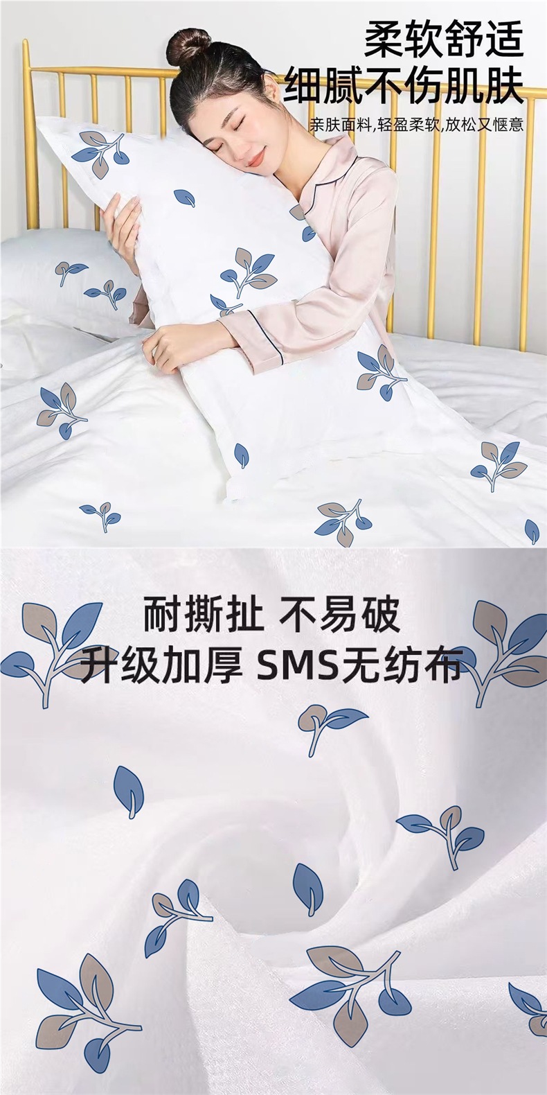 使い捨てベッドシーツ、掛け布団カバー、枕カバー、厚手の4点セット、ダブル旅行用ホテル寝具、携帯用