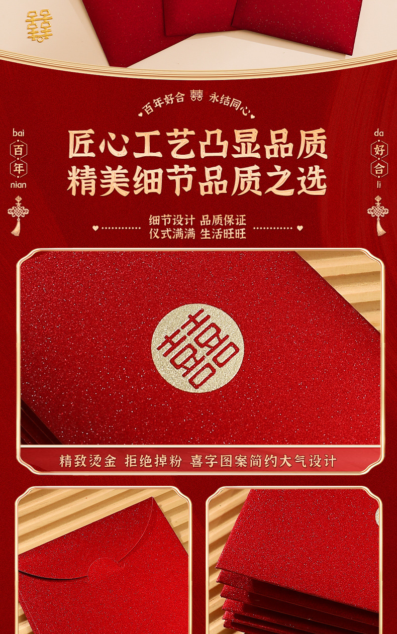 2025 新しい結婚式の赤い封筒グリッターブロンズつや消し赤い封筒クリエイティブウェディング用品卸売肥厚赤いパケット