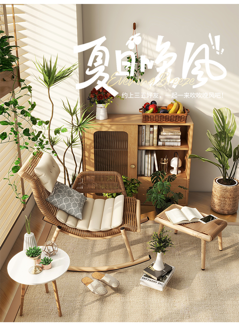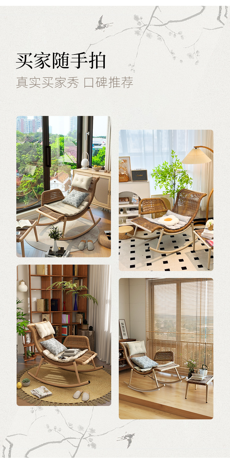 バルコニーロッキングチェアリクライニングチェア大人のレジャーチェアリビングルームホーム中国の怠惰な椅子屋外籐シングルロッキングチェア