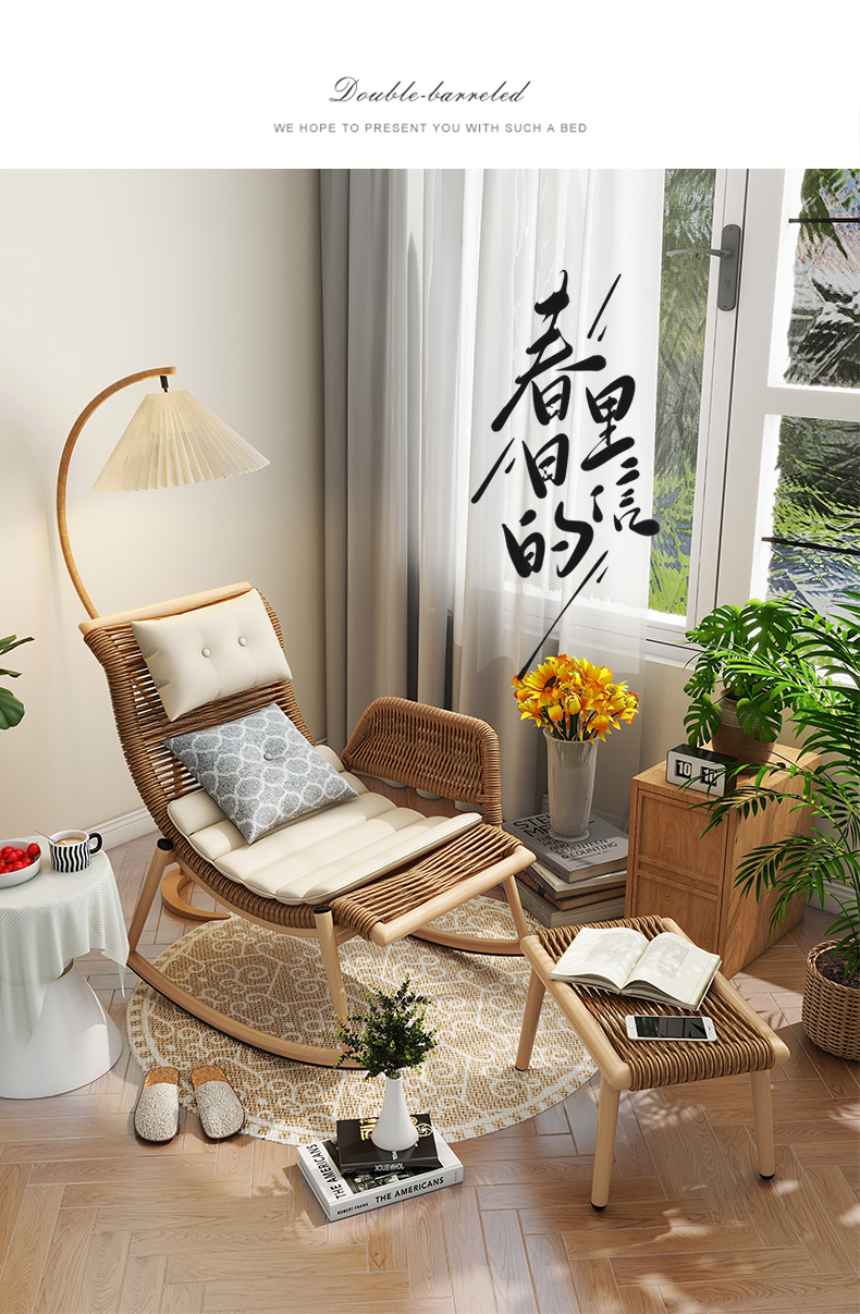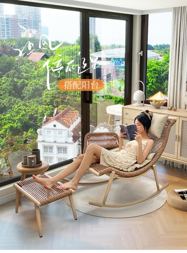 大人が寝られるロッキングチェアリクライニングチェア、シングルラタンバルコニーレイジーチェア、ベッドルームレジャーホームレイジーソファ