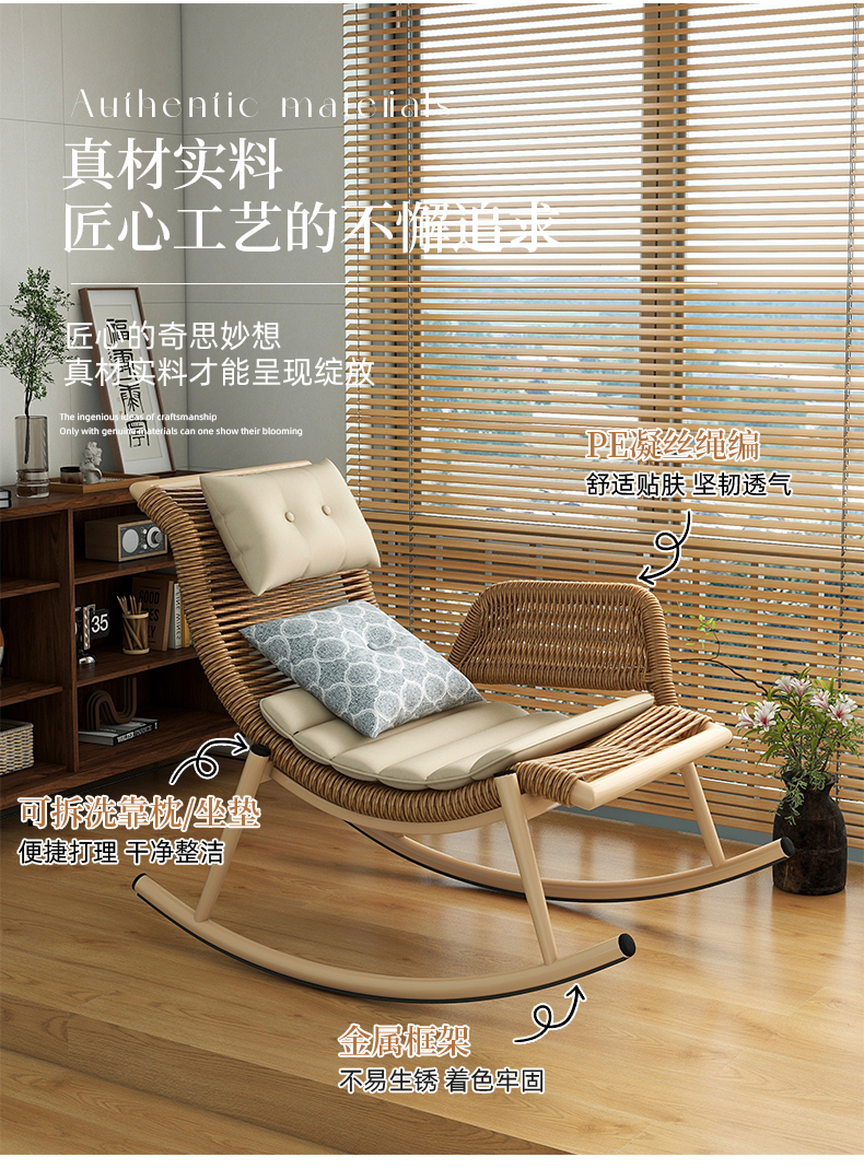 ロッキングチェア、リクライニングチェア、大人用怠惰なソファ、睡眠用レジャーバルコニー籐ソファチェア、インターネット有名人の屋外ロッキングチェア