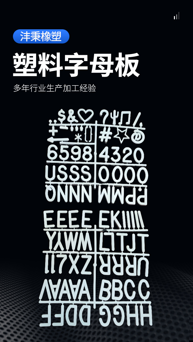 アルファベット板異形部品、複雑部品製造、プラスチック加工金型供給、英語数字既製品、大型商品