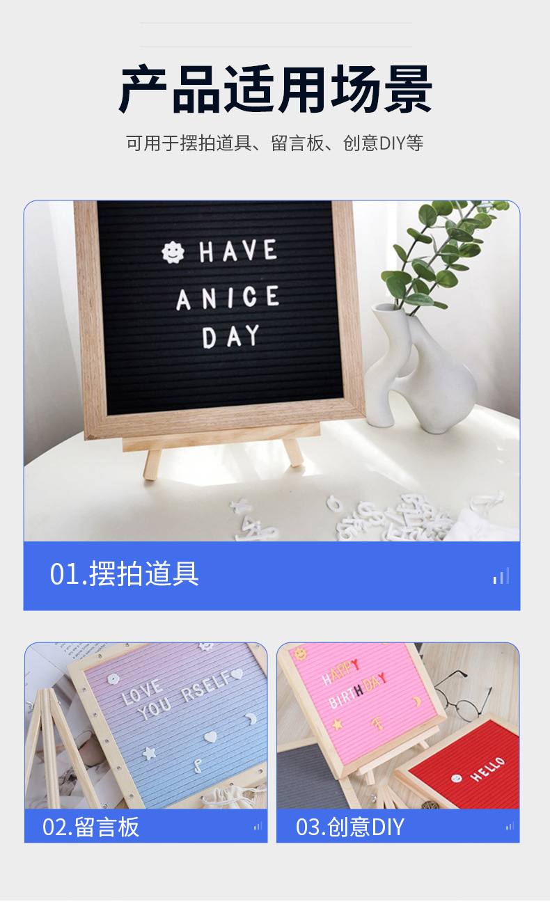 クロスボーダーフェルト小さな黒板オーク木製レターボード木製ホームメッセージボード赤ちゃんの100日写真小道具