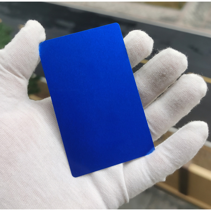 黒 0.8 ミリメートル厚さのアルミ合金名刺レーザー彫刻デバッグ材料ラウンドコーナーブルーメタルカード在庫あり