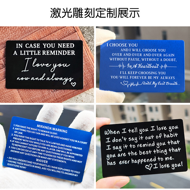 跨境不锈钢名片可激光雕刻金属卡片材料黑色金色激光打标拉丝名片