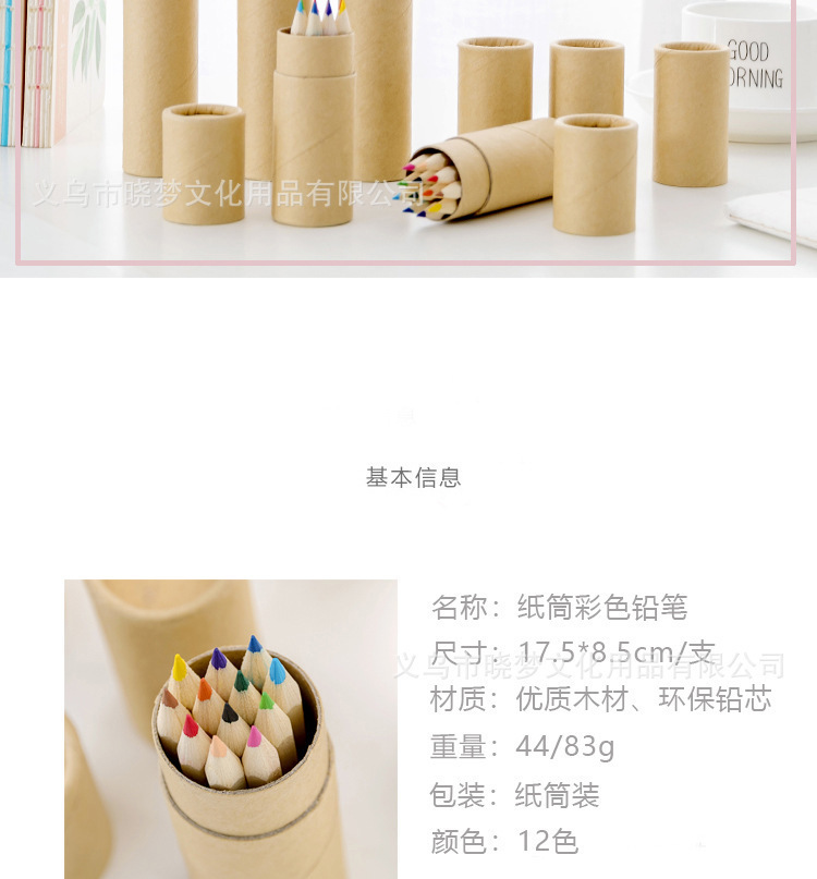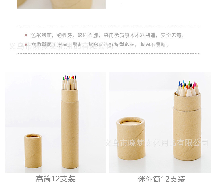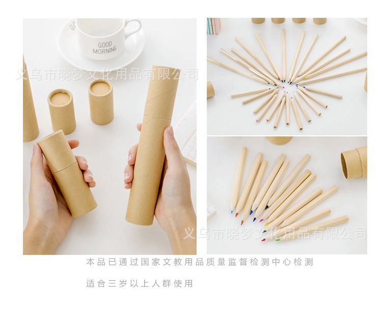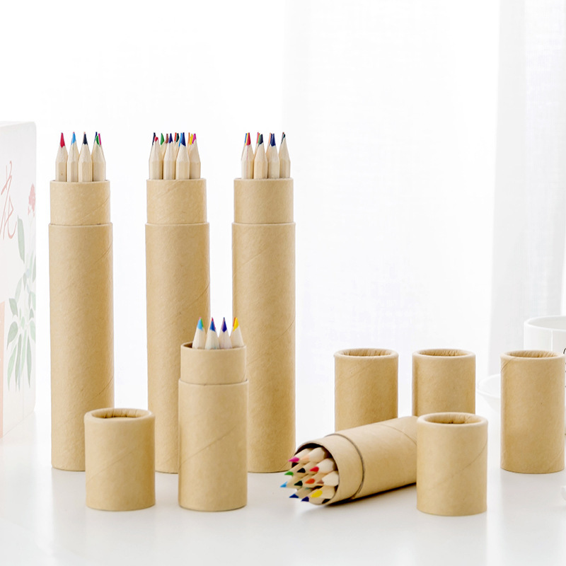 クリエイティブ学生文具 高級天然木12色クラフト紙筒入り色鉛筆3.0 中級鉛筆 ロゴ入り鉛筆 卸売