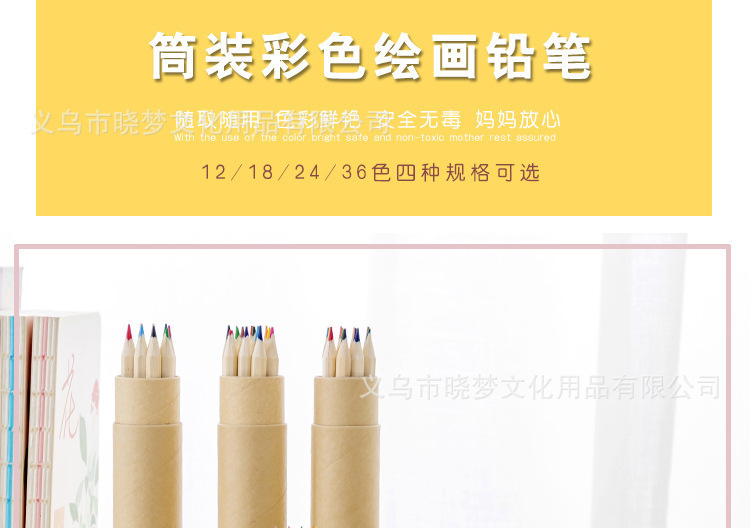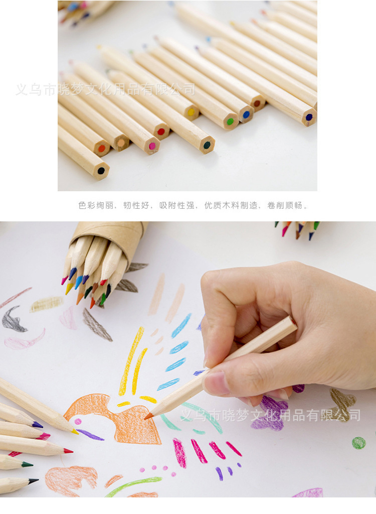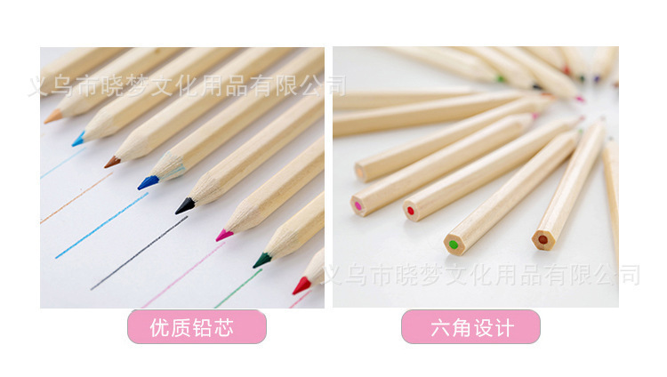 晓梦原木色彩铅6色12色盒装彩色铅笔可加印logo儿童涂鸦绘画铅笔