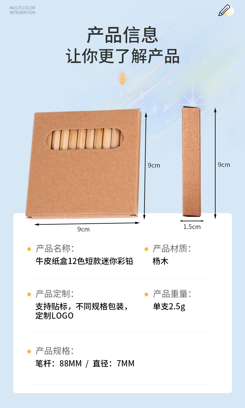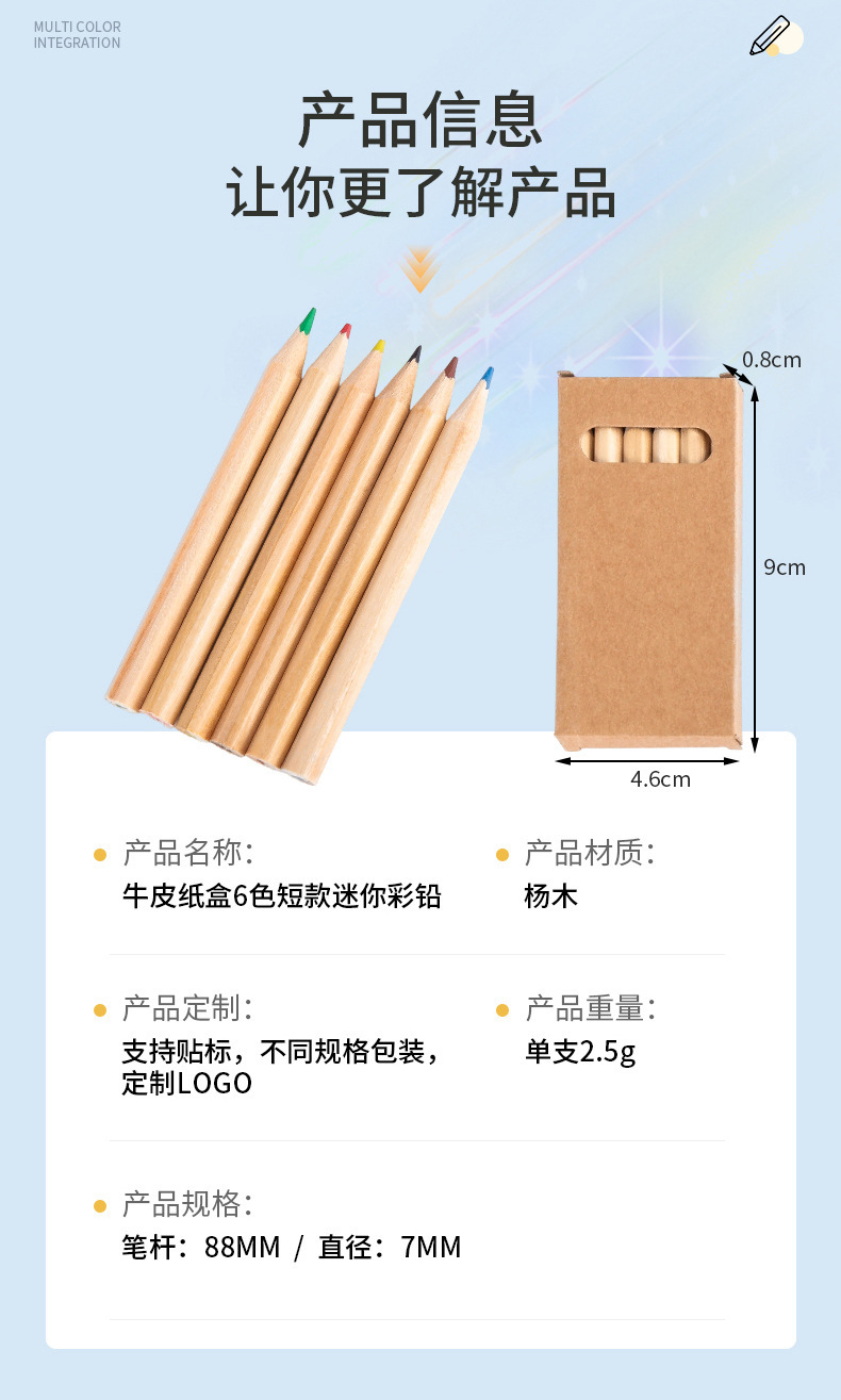 6色短支迷你彩铅套装牛皮纸盒装木质彩色笔儿童绘画铅笔文具批发
