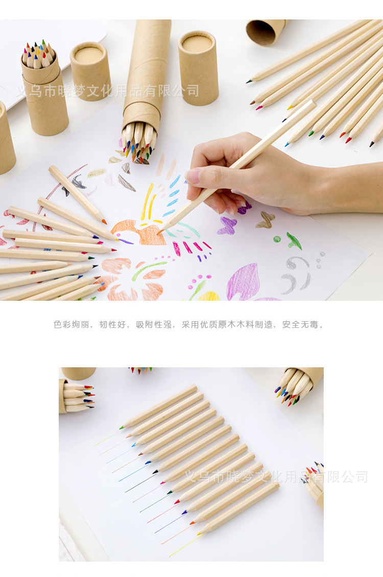 原木筒装カラー鉛筆学習用品小学生賞品絵画ロゴ子供プレゼント卸売りカラー鉛