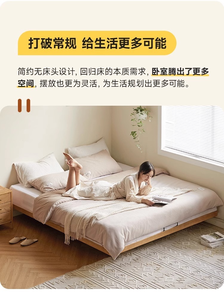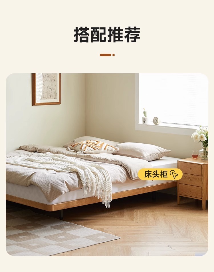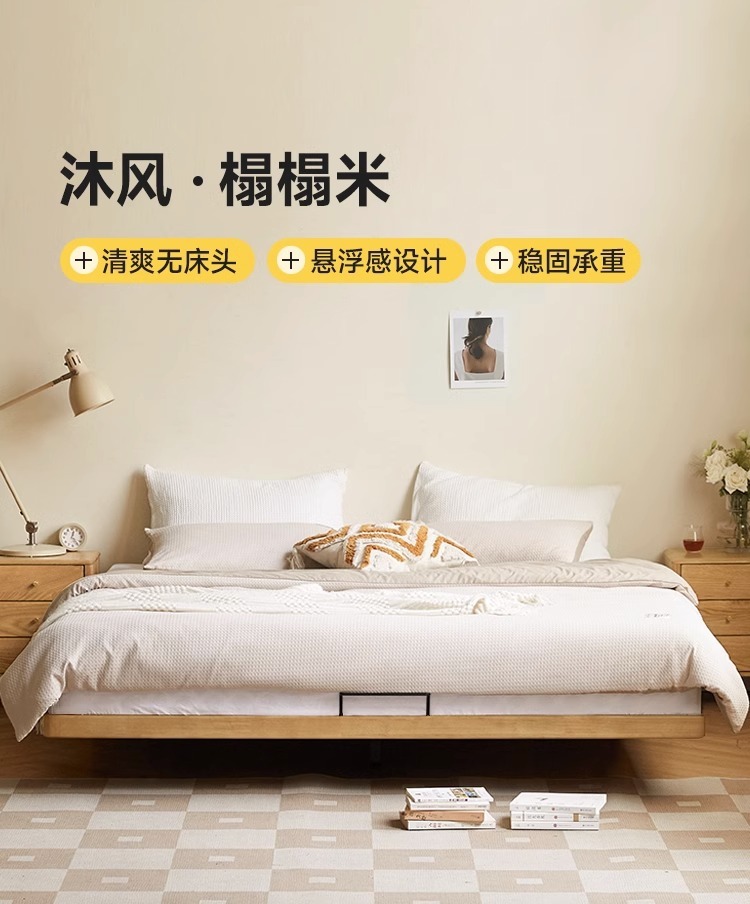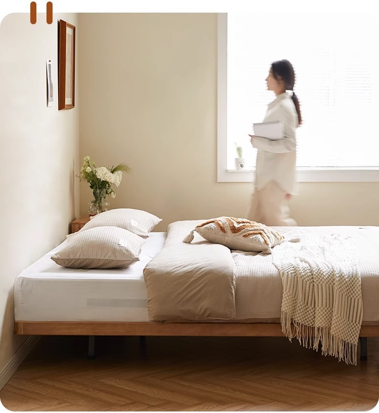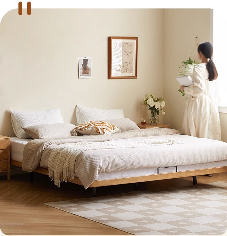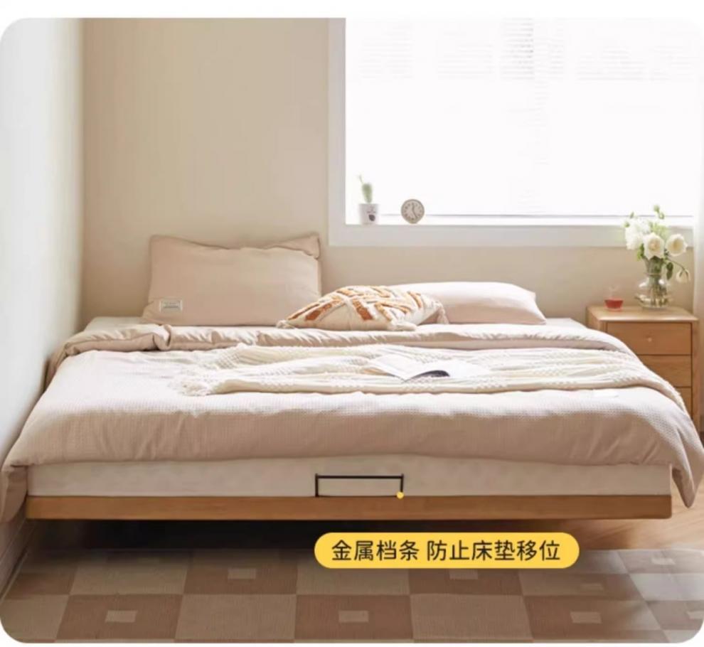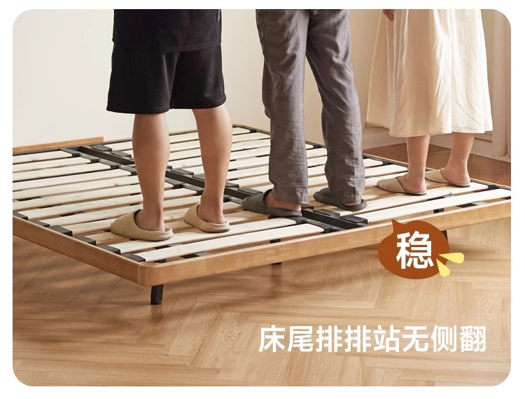 無垢材ベッド モダン シンプル ベッドサイドなし 吊り下げ鉄製畳 ホームステイ レンジフレーム