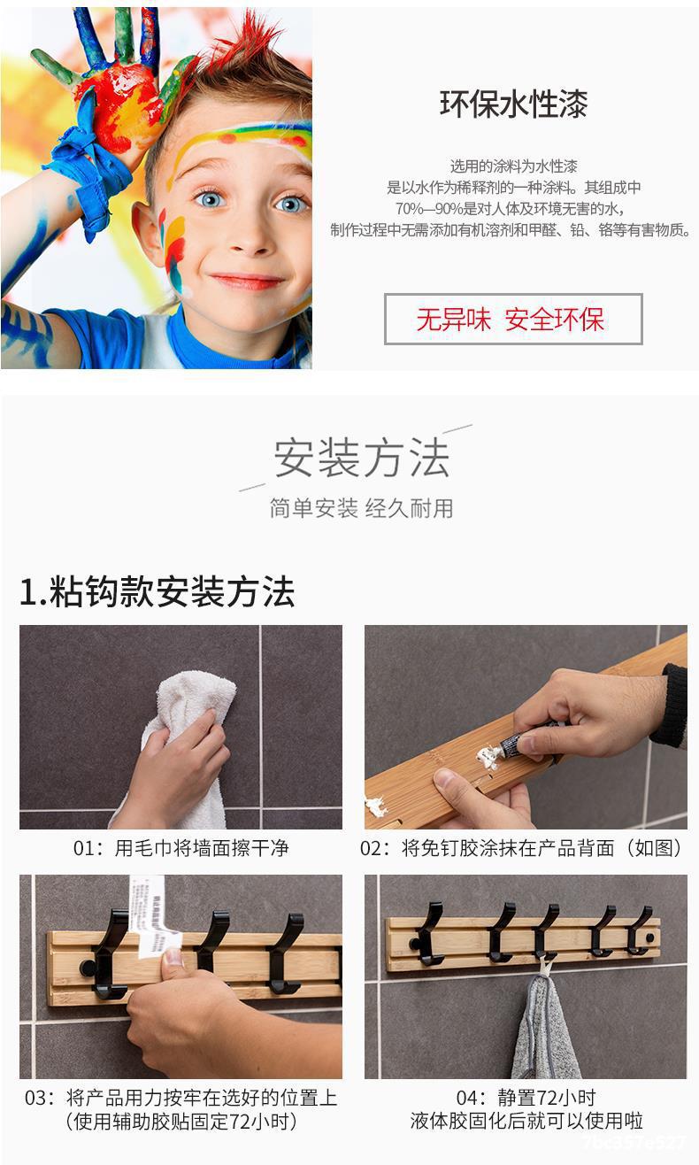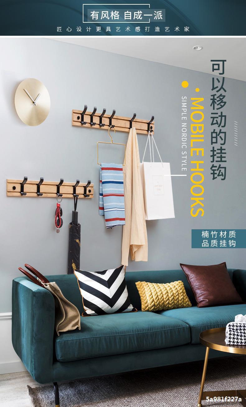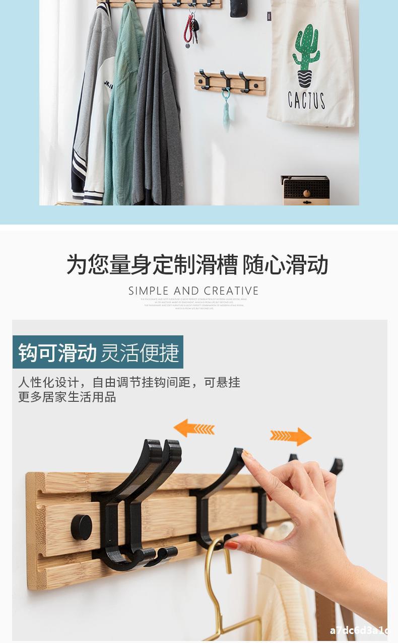 可移动门后挂钩楠竹创意门上挂衣架卧室入户挂门款衣物收纳置物架