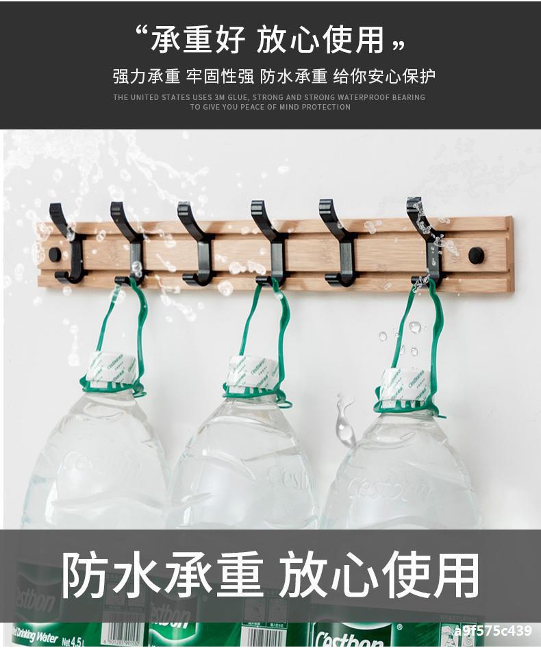 竹と木の取り外し可能なパンチフリーフック、リビングルームと寝室の壁掛け洋服フック、整理と収納のための複列洋服ラック