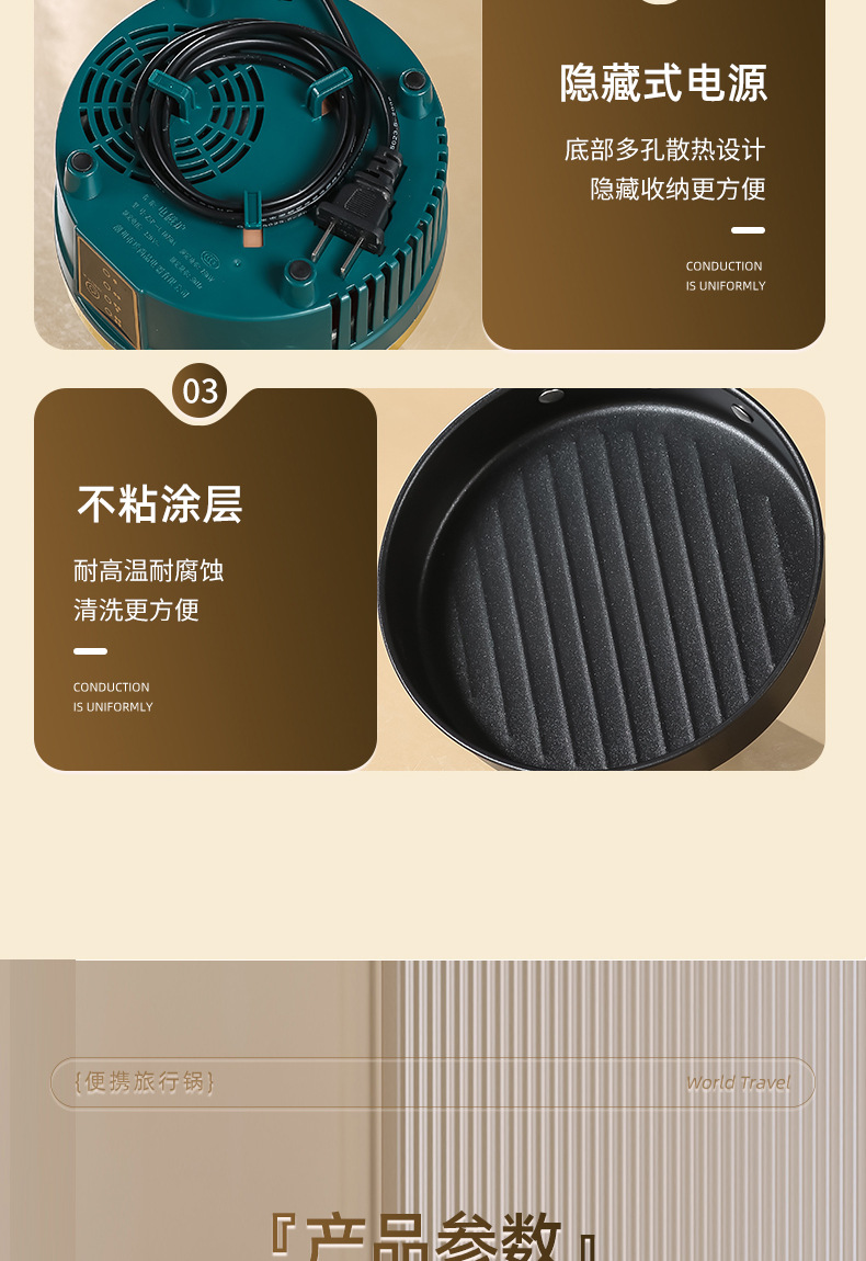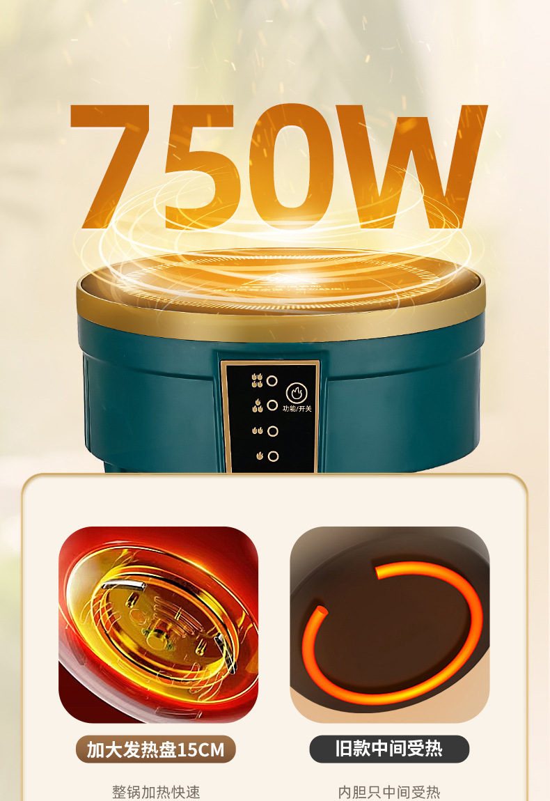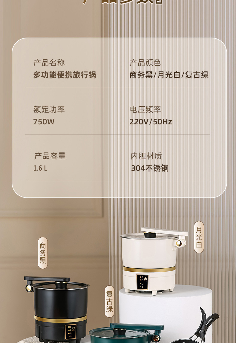 110V跨境多功能电煮锅便携式电煮锅可折叠锅旅行分体式宿舍电煮锅