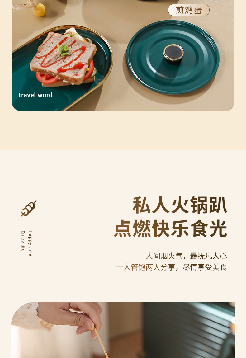 円格ステンレス出張折り畳み鍋携帯旅行分離式電気煮鍋屋外小型電気鍋1-2人