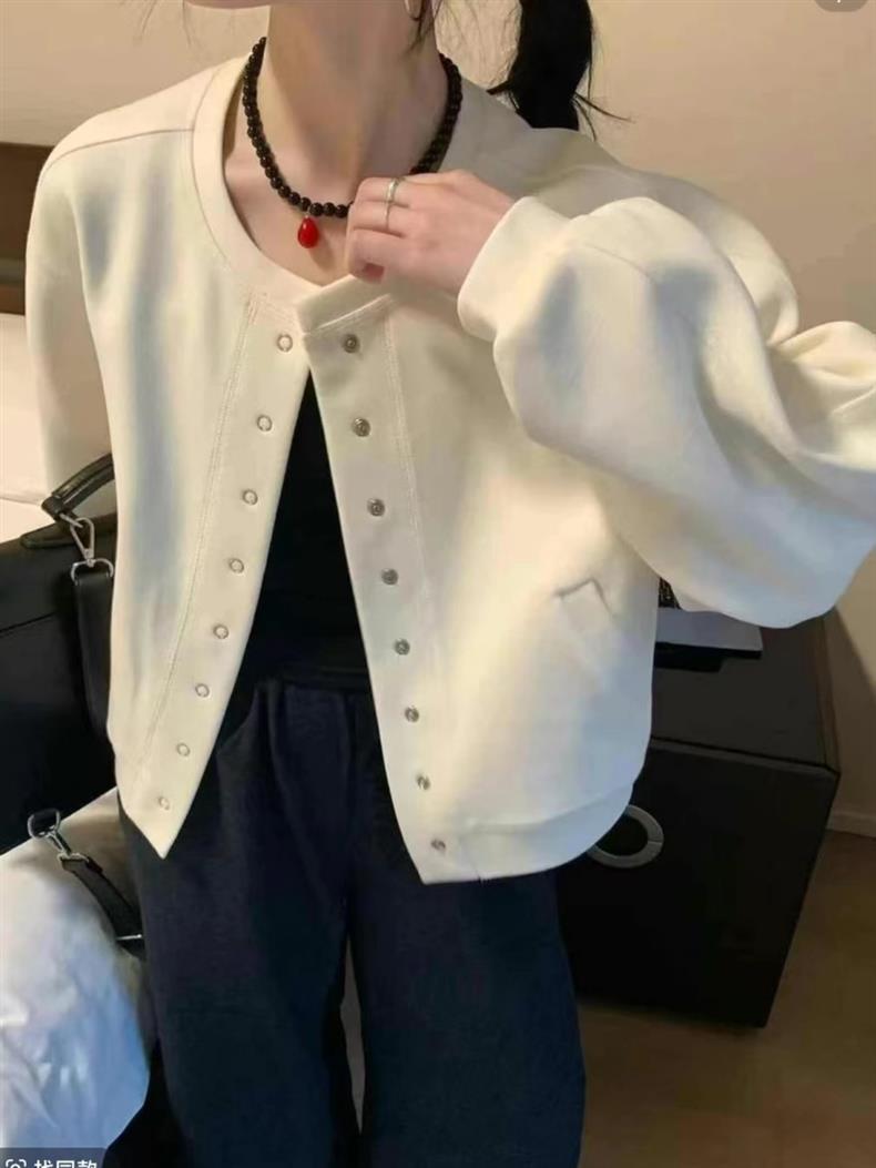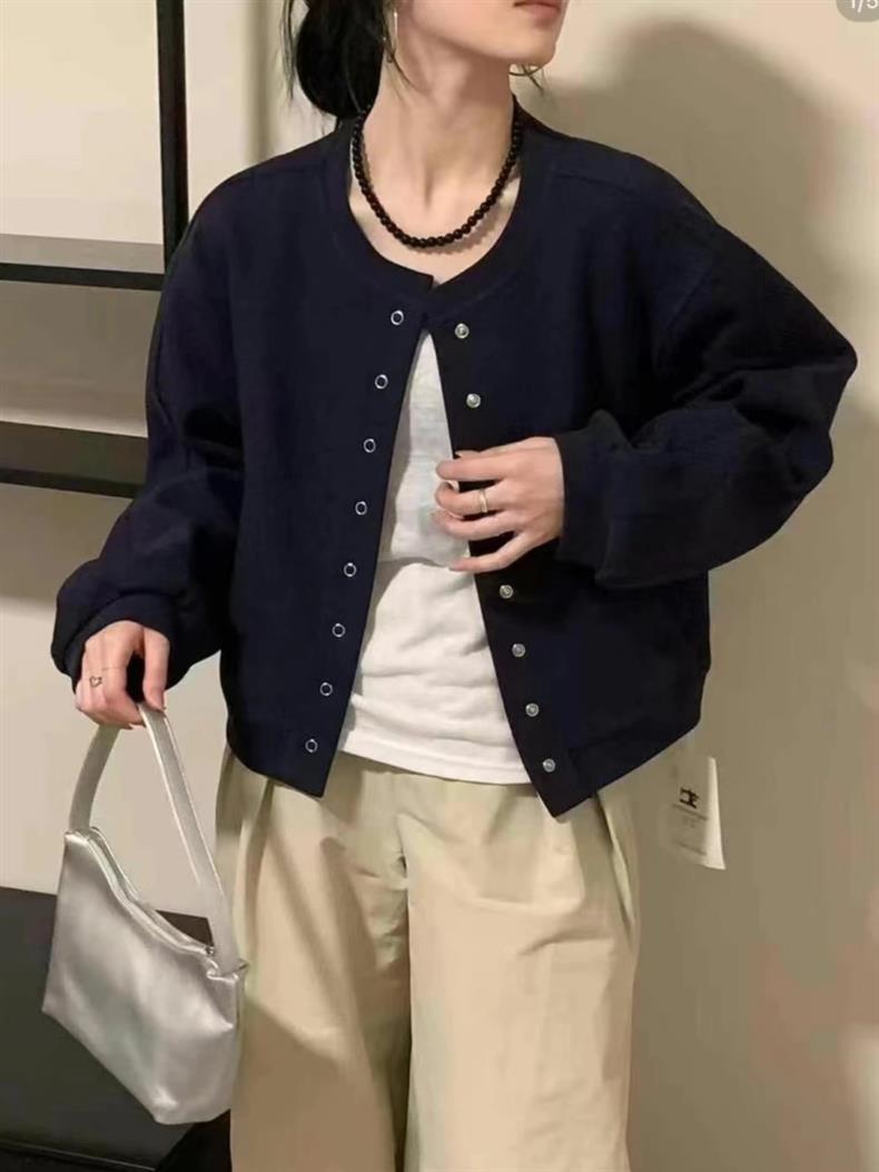 ショートラウンドネック野球ジャケット女性のための 2025 春の新スタイルシンプルで多用途カジュアル小柄ジャケットトップトレンディ