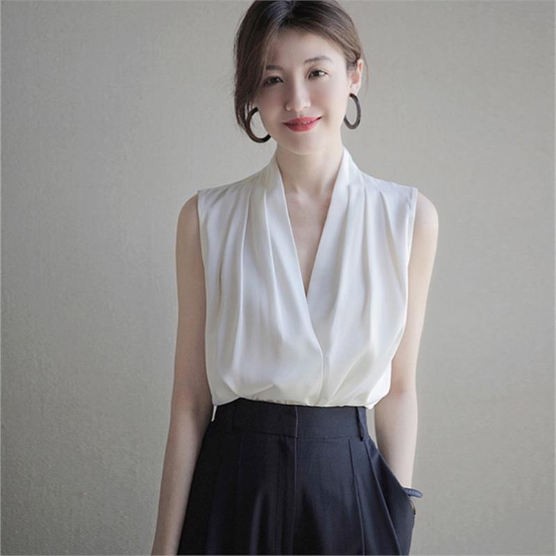 漏れを取り除き、女性の外国貿易Vネックベストを撤回、女性の夏のノースリーブ薄手シフォンシャツホルターネックトップ