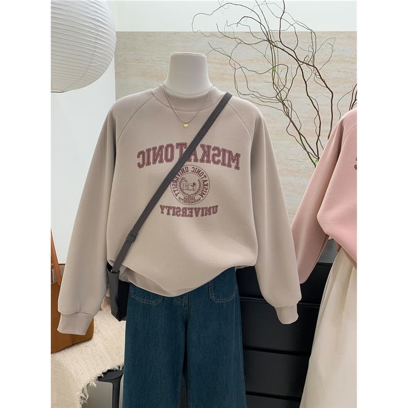 レターバタフライ刺繍ルーズトップ春の新作レディースカジュアルシンプル韓国INSトレンドラウンドネック人気スウェットシャツ