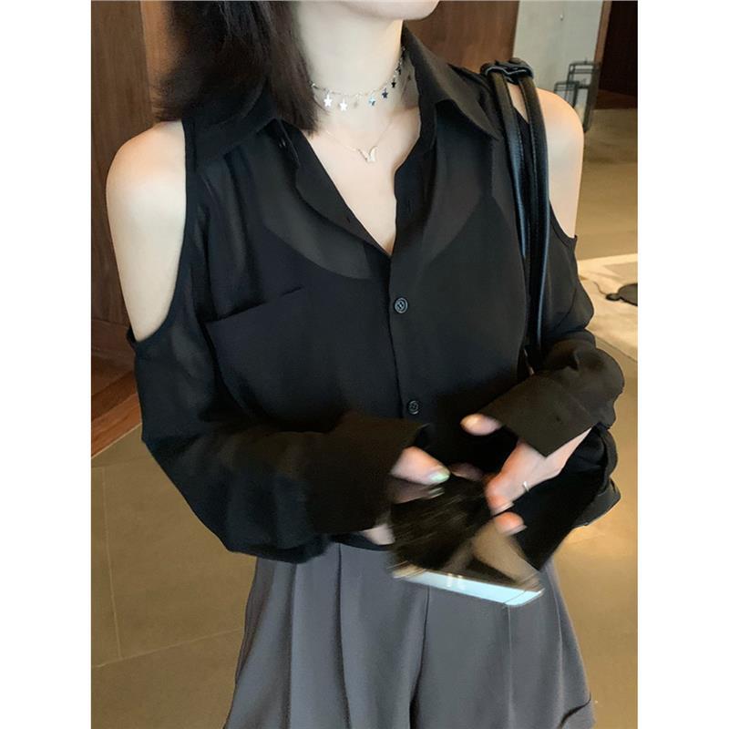 イタリアへの貿易輸出オリジナルカウンター婦人服シフォンオフショルダーシャツ薄手ジャケット