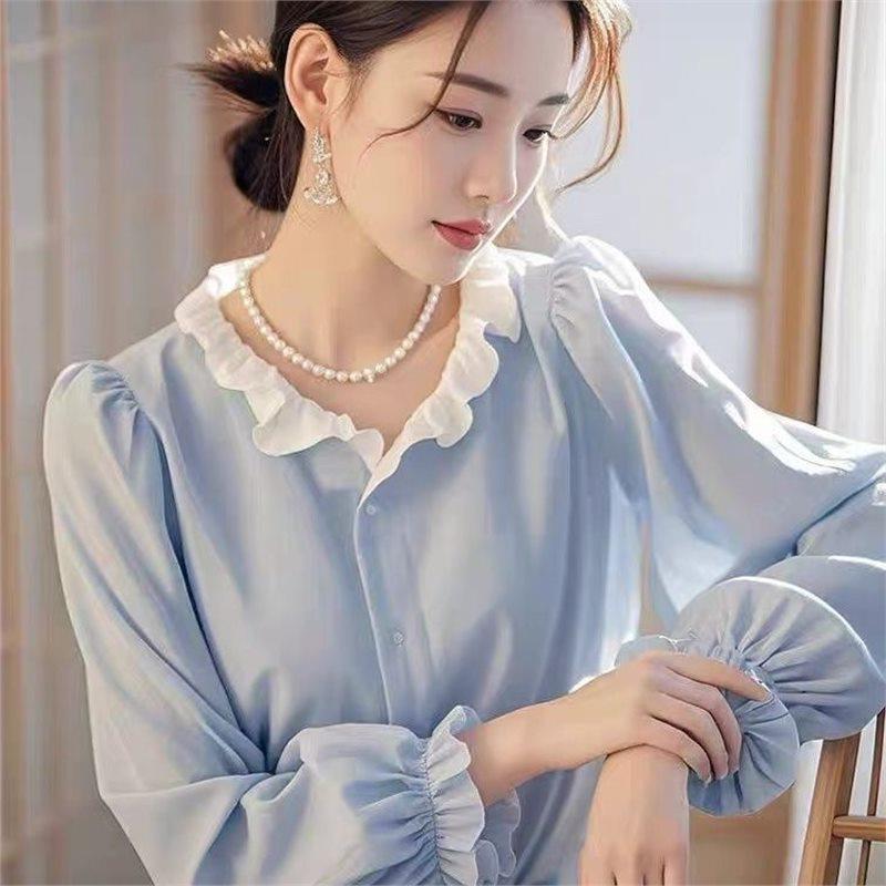2024 新しいユニークで美しいトップスライト高級ハイエンドフレンチスタイル通勤ピンク長袖シャツ女性初秋