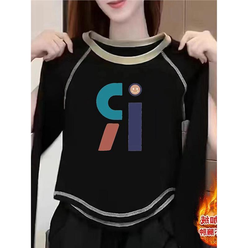 2025年新作長袖Tシャツ、女性用スリムフィットボトムシャツ、秋の女性用ショートスタイルの超体型トップス