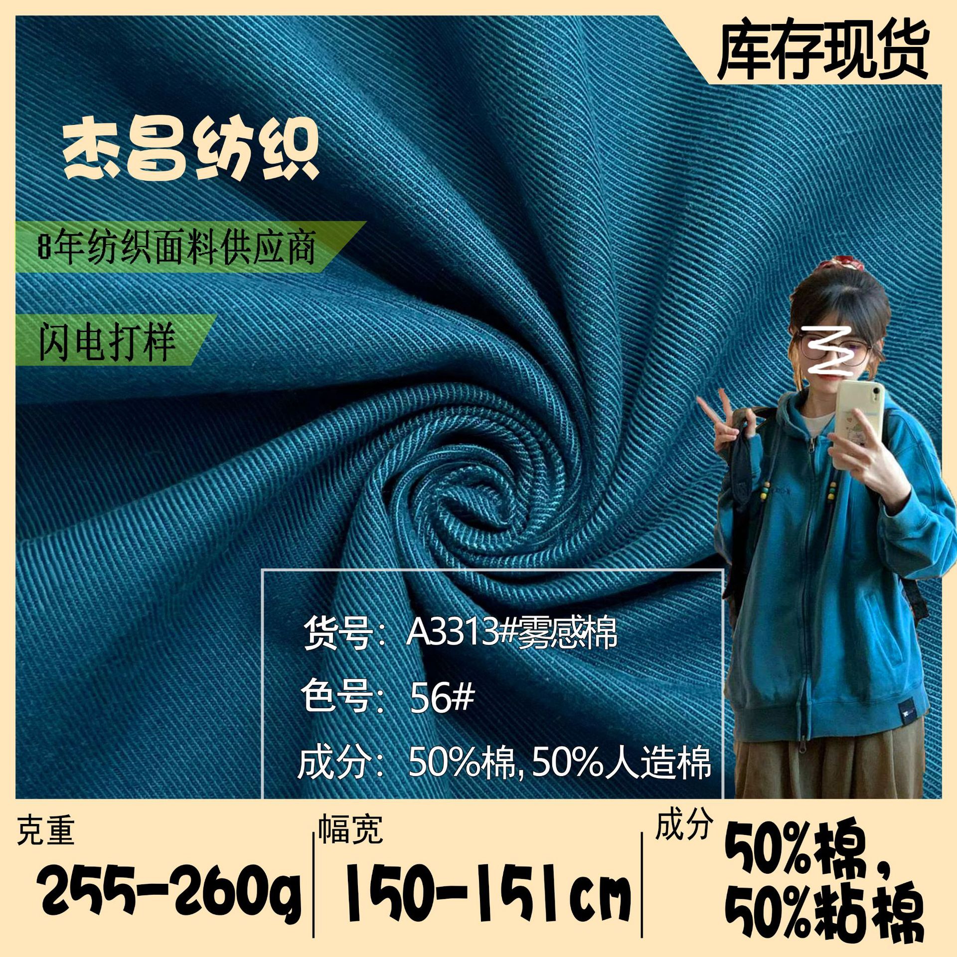 255-260g雾感棉人造棉21支加厚轻奢简雅外套粘棉混纺人棉梭织布料