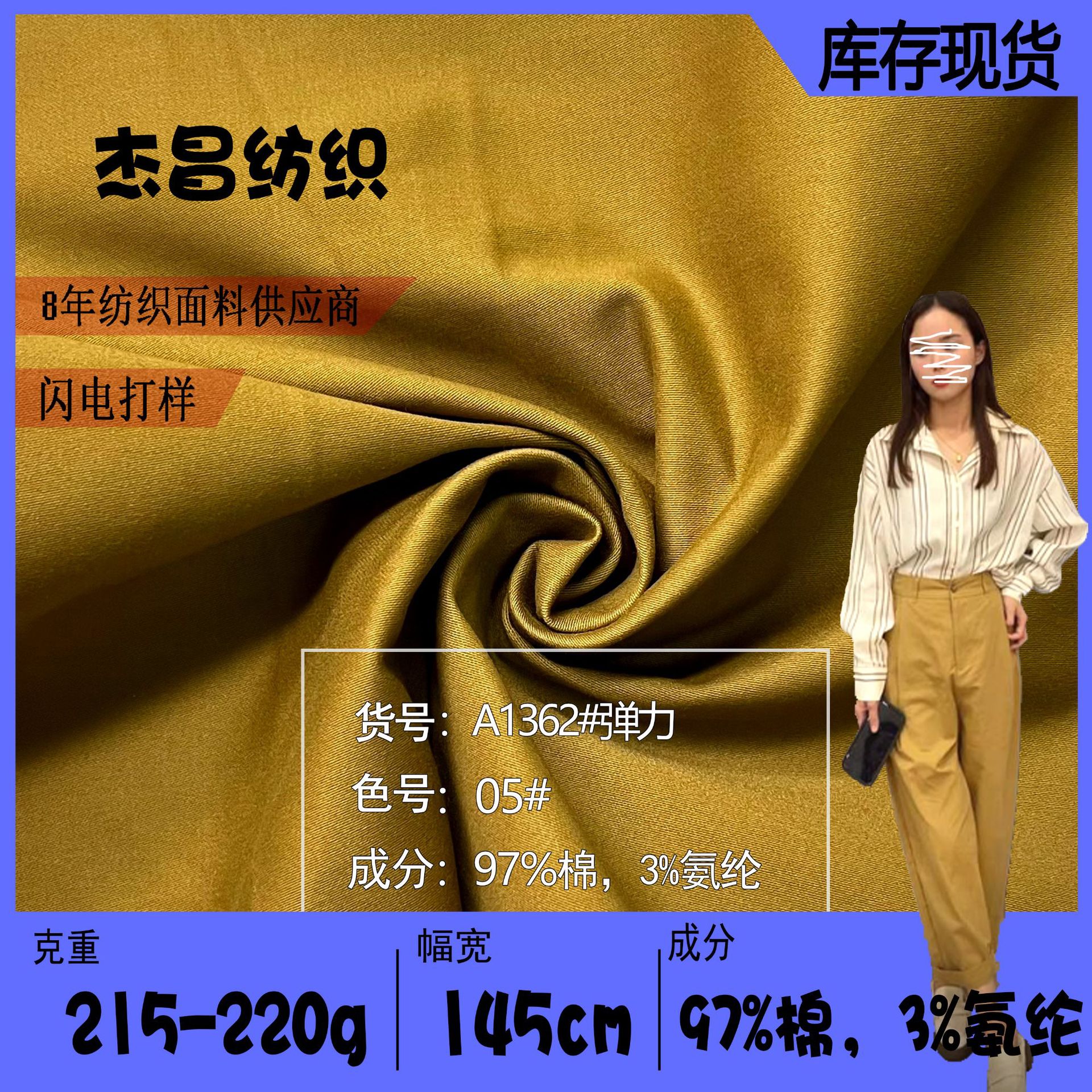 サンプル発送可能 215-220g サテンツイル生地 高伸縮性 ウォールサテンパンツ ツイル純綿生地