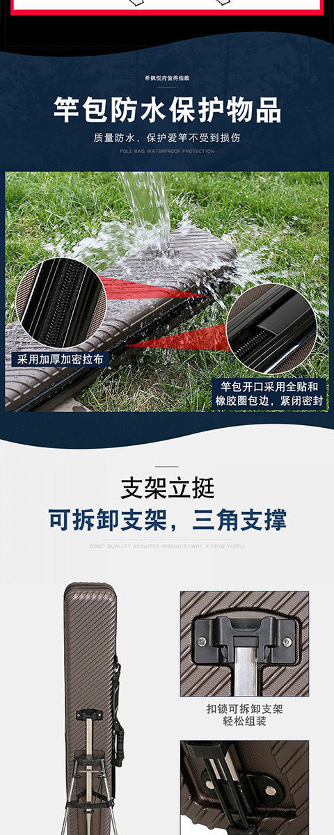 大容量竿包ABSハードケース防水漁具包1.25/1.3m軽量ダブルファスナー釣り包卸売り