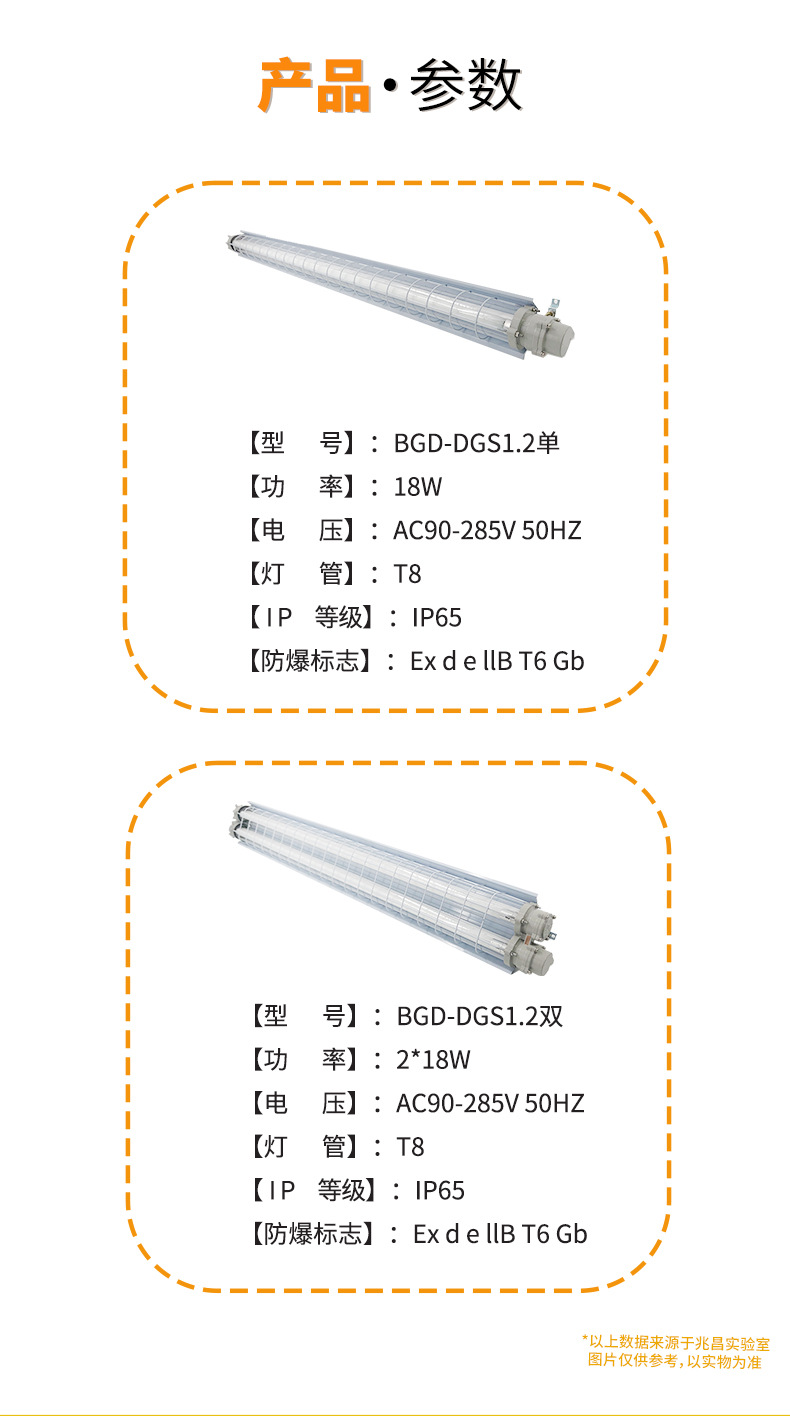 兆昌LED防爆灯管 车间仓库工厂单管双管灯led防爆灯BGD-DGS 18W*2