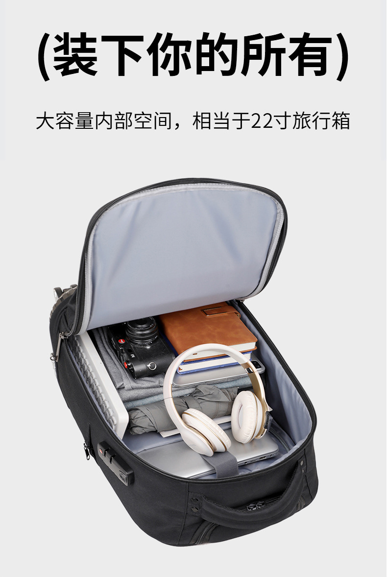 トロリーバックパック、大容量短距離旅行バックパック、隠しショルダーストラップ、多機能ビジネス通勤バックパック