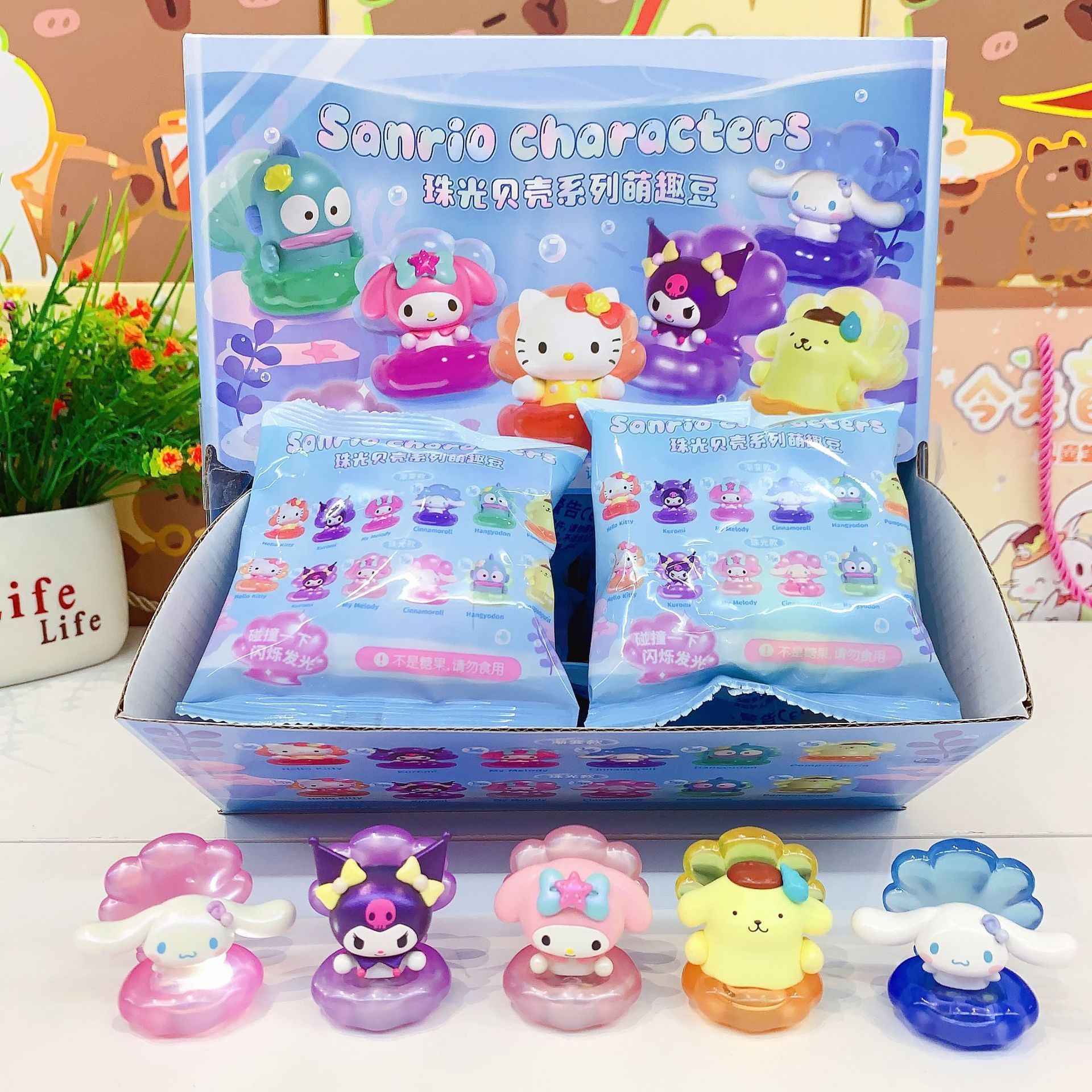 萌趣新品卡通三丽鸥珠光贝壳系列萌趣豆精美可发光公仔摆件盲袋款