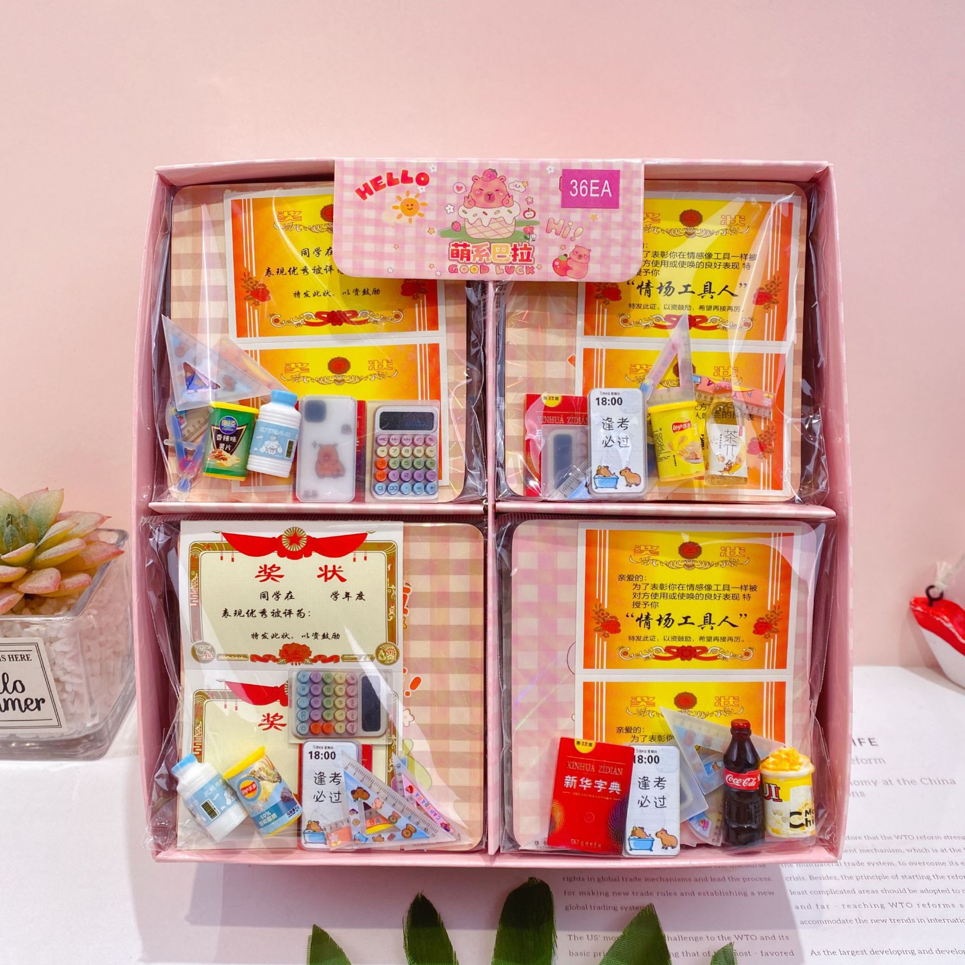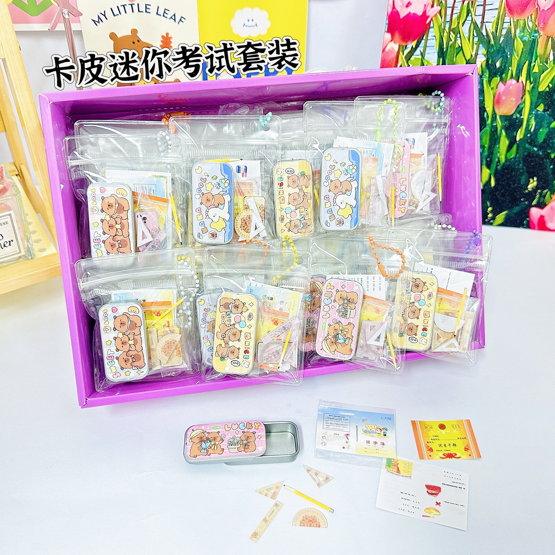新款文创卡皮巴拉迷你文具屋套装可爱卡通创意微缩文具场景过家家