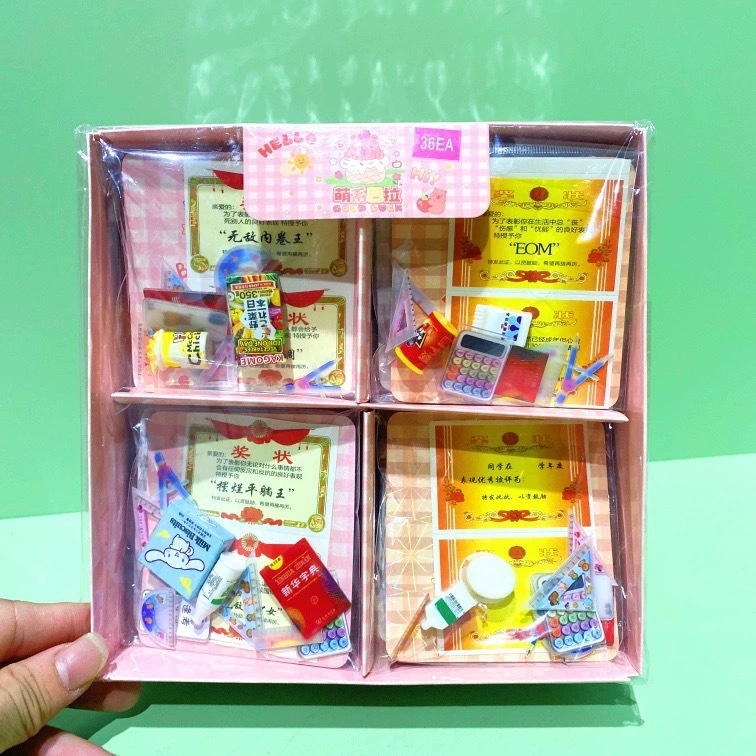 儿童微缩文具迷你套装铅笔盒尺子小奖状课本试卷字典全套模型玩具