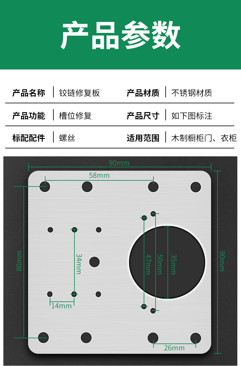 キャビネットドアヒンジピース固定プレートワードローブステンレス鋼ヒンジパッドプレート取り付けキャビネットドア