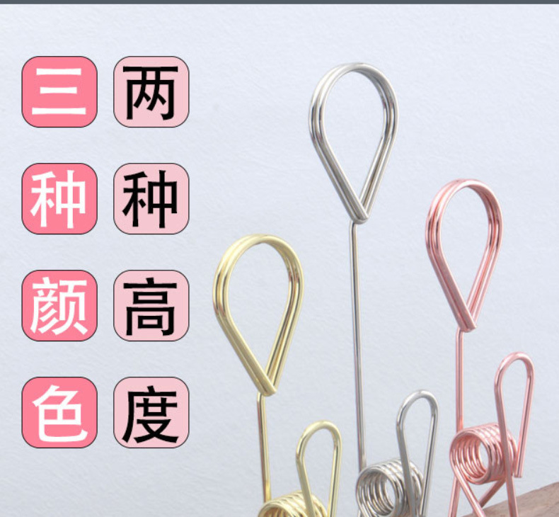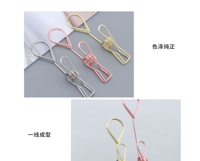 水滴型両面オフィスファイルクリップ、書類クリップ、収納クリップ、ロングテールクリップ、卸売メーカー、電気メッキメモクリップ、名刺クリップ