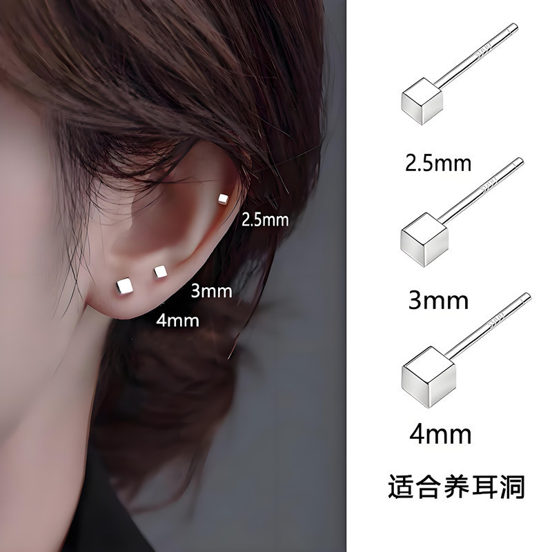 スクエアイヤリング 925 シルバー日常多用途女性ニッチデザイン小さなイヤリング耳ピアスシンプルなイン耳骨ネイル卸売