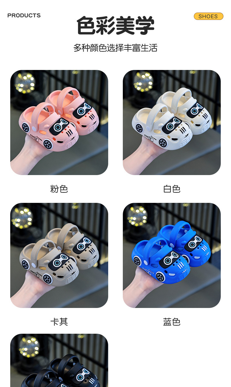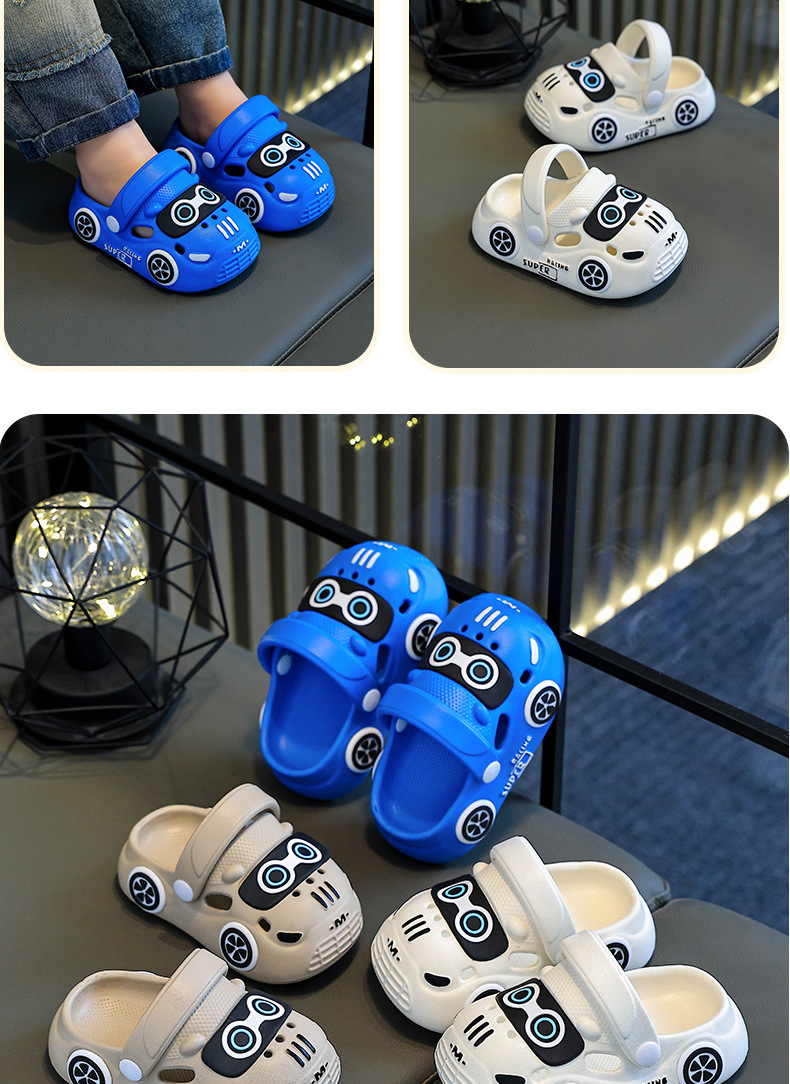 子供用スリッパ夏の漫画の男の子と女の子の滑り止めソフト底屋内と屋外の車の赤ちゃん包頭穴サンダル