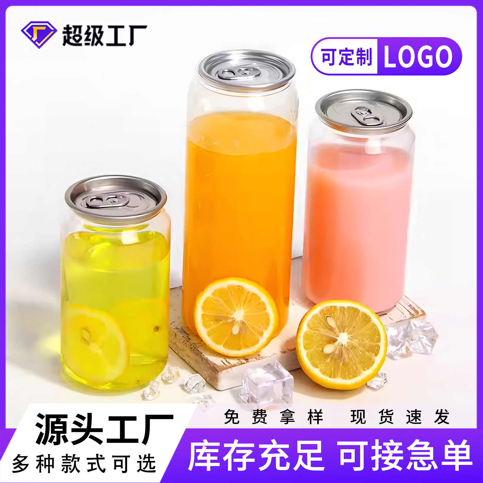 クロスボーダー卸売プラスチック缶透明petミルクティーカップ空ボトルシール缶気泡水ジュース飲料缶