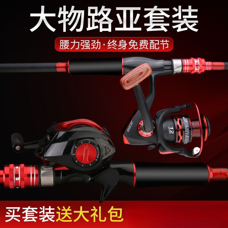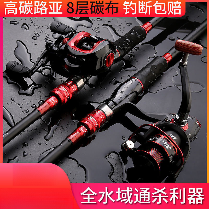 Dawa Mingpin カーボンルアーロッドセット ウォータードロップホイール ガンハンドル 釣竿 ストレートハンドル シーロッド 遠投 ブラックフィッシュマウス