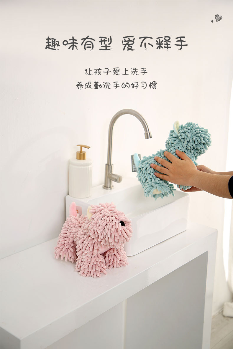 【売れ筋】漫画風子犬のシェニール織りハンドタオル、キュートで多機能な家庭用漫画風動物デザインのクリエイティブなハンドタオル