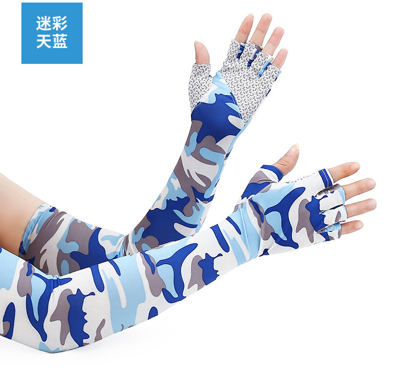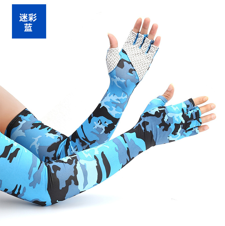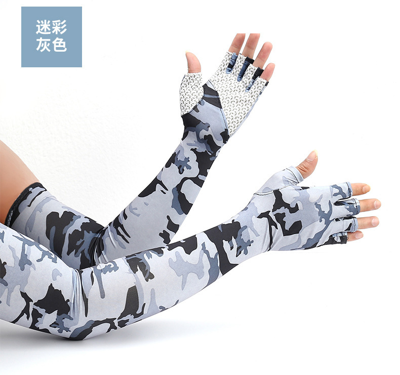 日焼け止め手袋スリーブ一体型アイスシルク通気性5本指スポーツサイクリングアイススリーブ滑り止め屋外釣りスリーブ