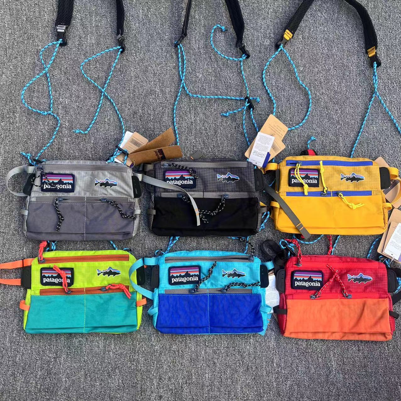 撞色钓鱼斜挎包潮牌街头单肩包男女户外防水小包多功能机能手机包