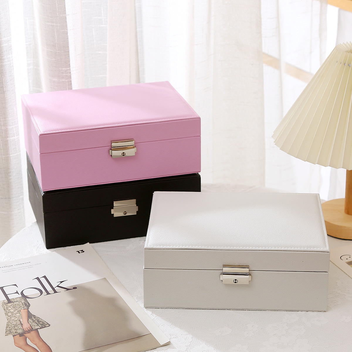 ロック付きハイエンド二層大型ジュエリーボックス、ハイエンドジュエリーネックレス、リング、イヤリング、ジュエリーギフト収納ボックス