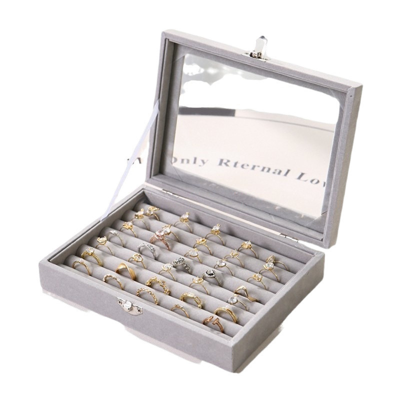 单层绒布开窗亚克力首饰收纳盒戒指耳环耳钉珠宝饰品整理展示盒子