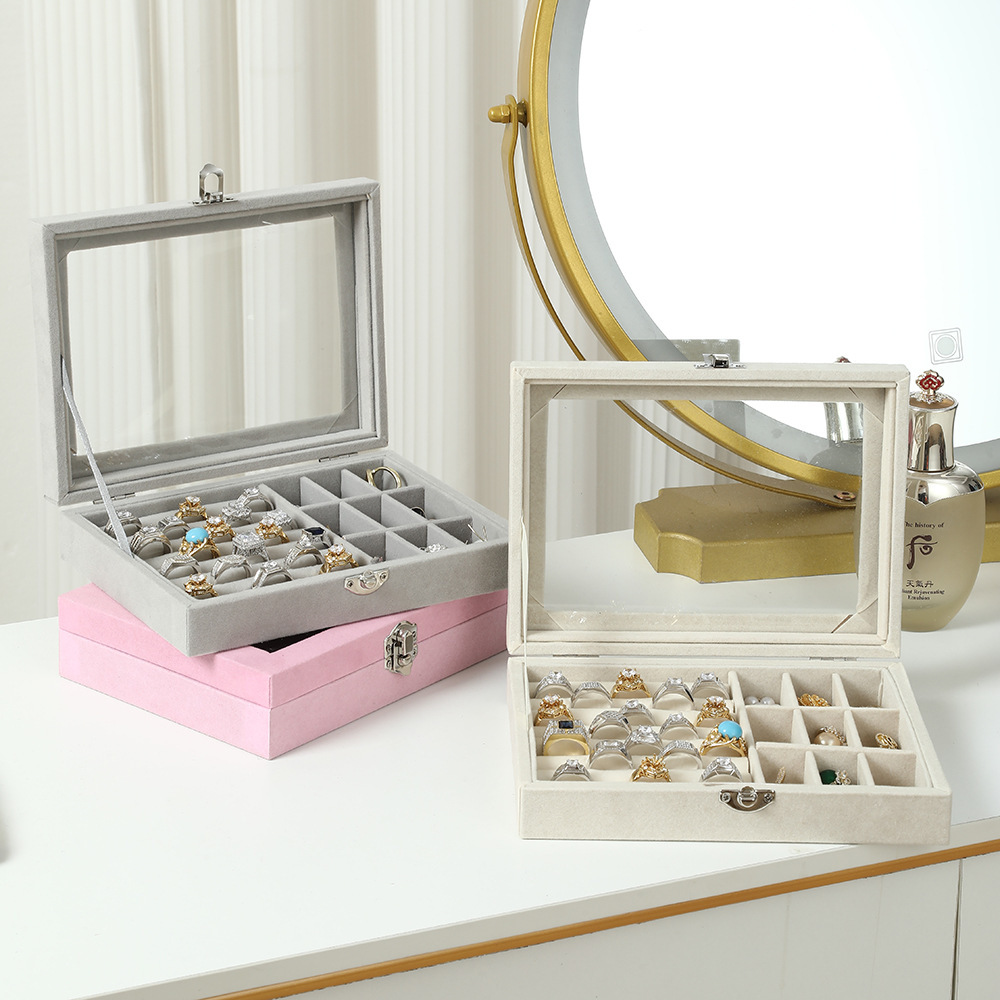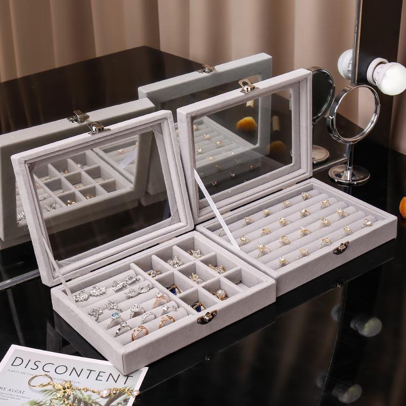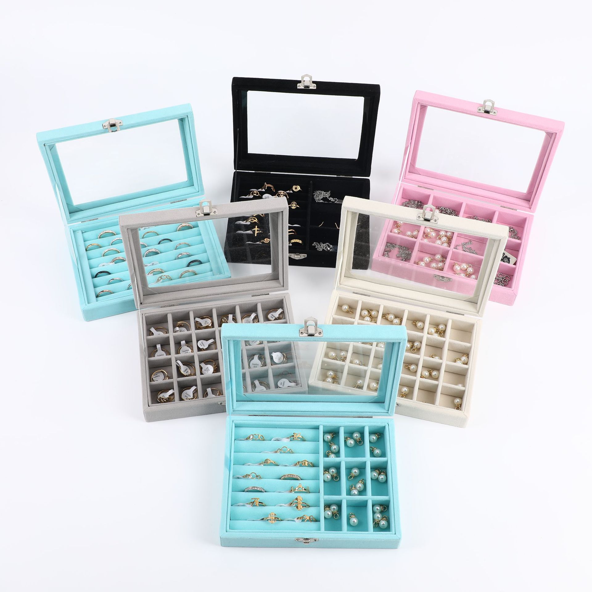アイスベルベットポータブルジュエリー収納ボックスディスプレイボックスリングボックス3グリッド9グリッド12グリッドシンプルな透明な窓デザイン