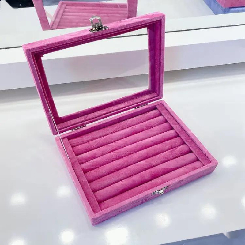 收纳简约现窗透明珠宝箱绒布首饰收纳盒戒指耳钉手链项链饰品