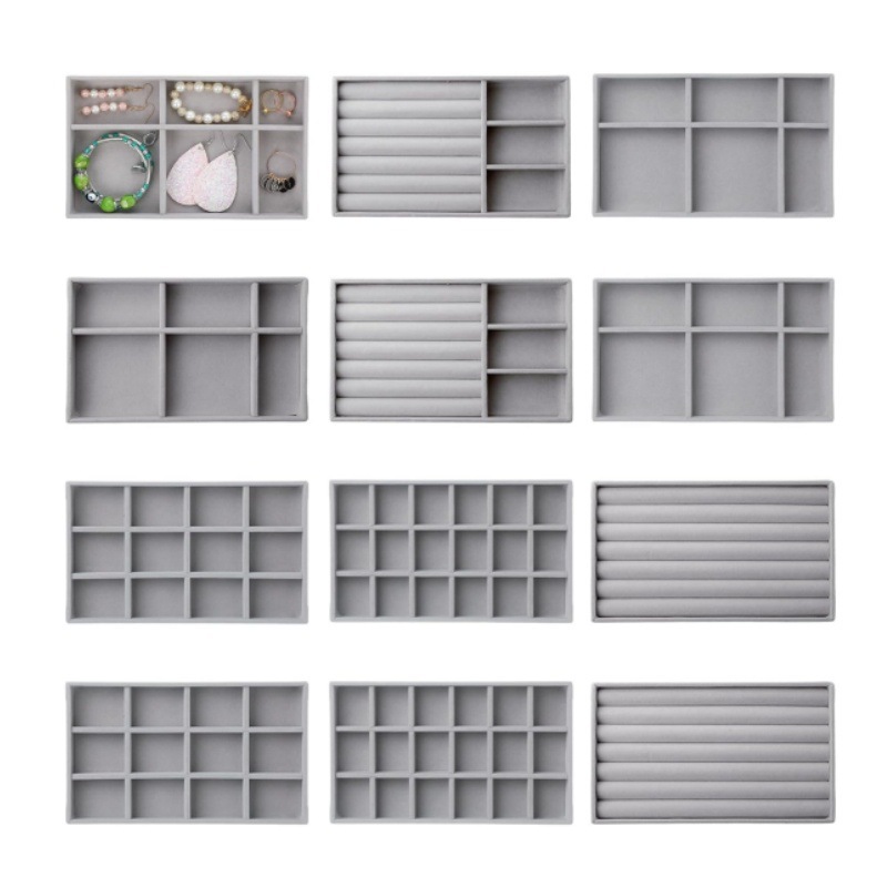 積み重ね可能なジュエリーディスプレイトレイ引き出しジュエリー収納オーガナイザーイヤリングネックレスブレスレットリング収納トレイ