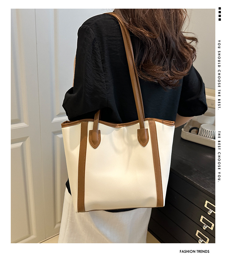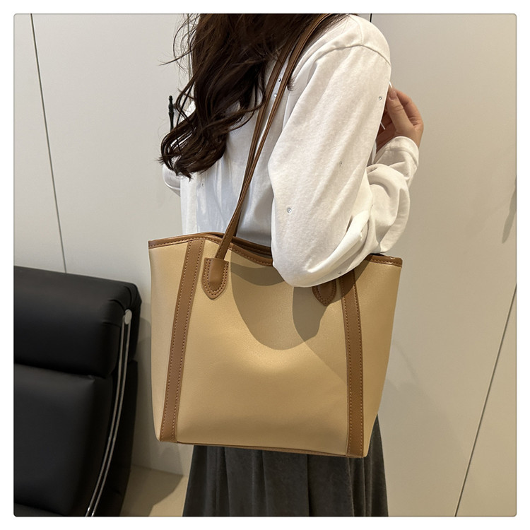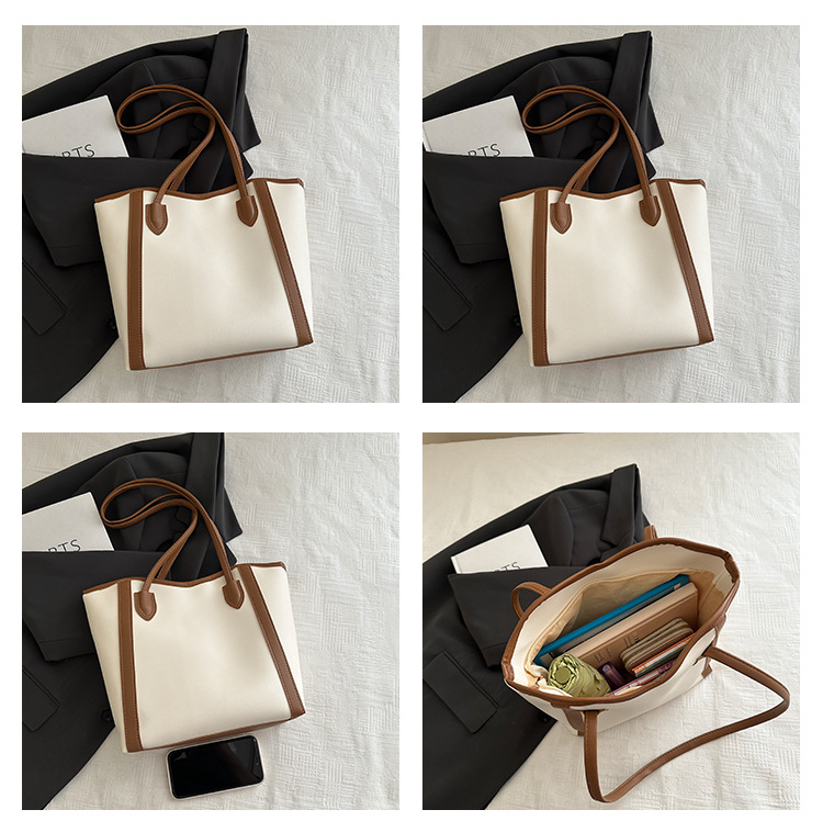リラックス感シンプルなコントラストカラーの女性用大型バッグ2025新作人気ショルダーバッグ大容量通勤エレガントトートバッグ