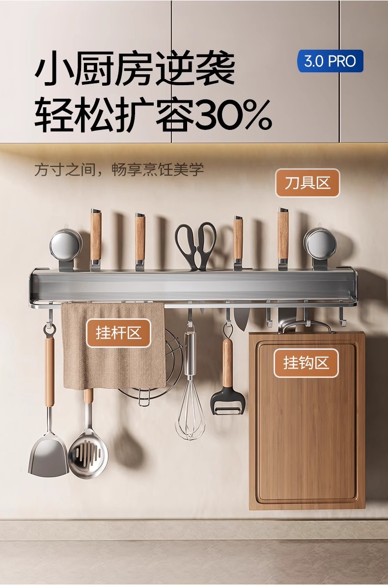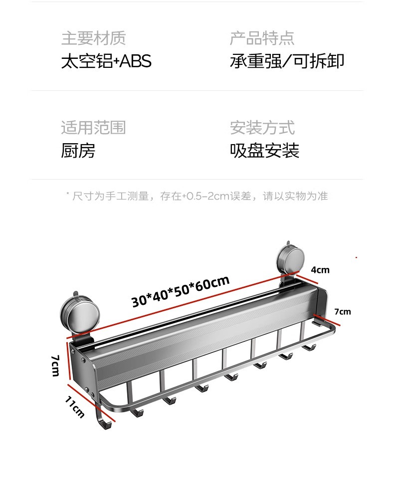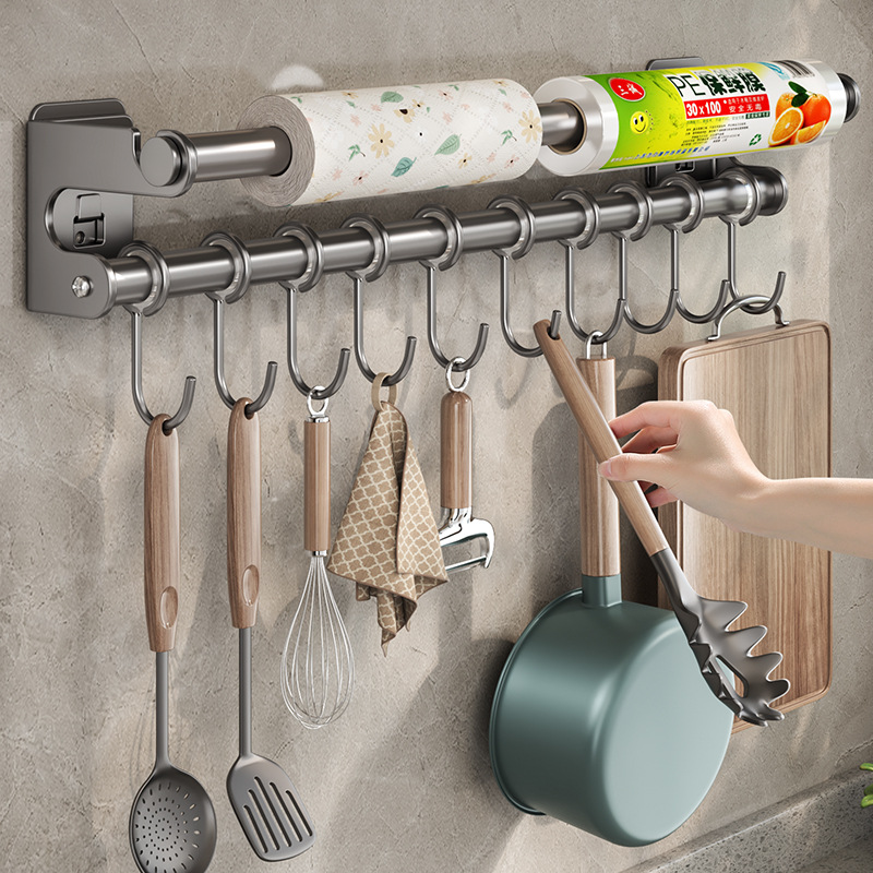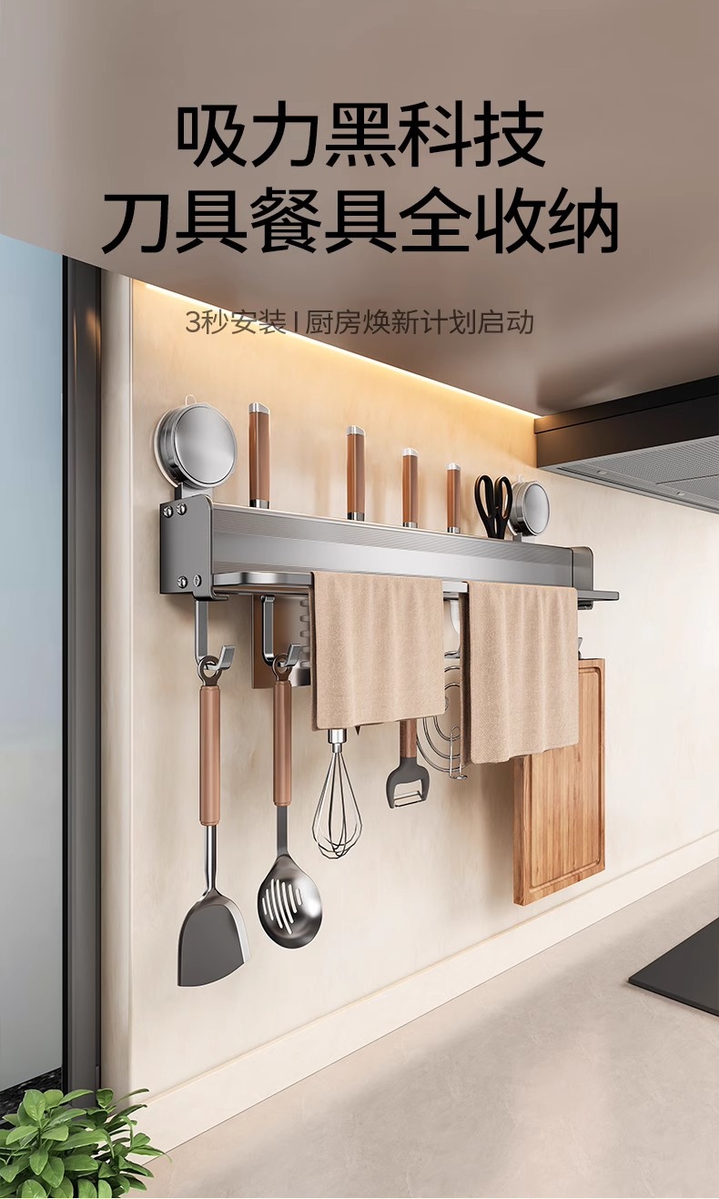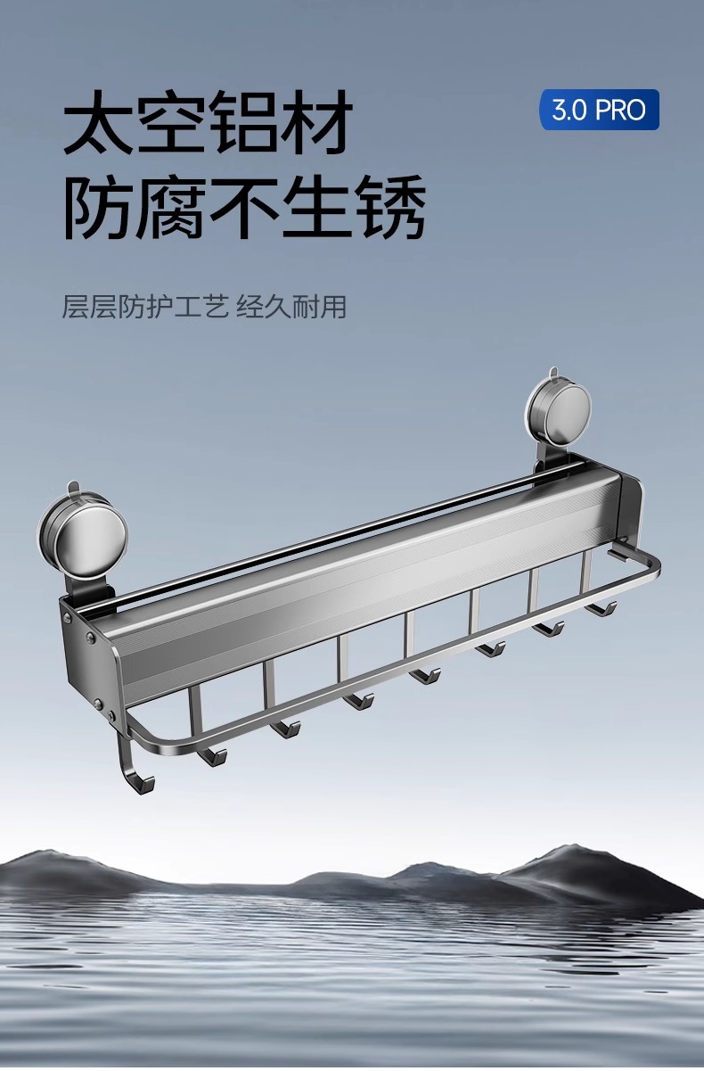 枪灰厨房挂钩架免打孔厨房置物太空铝壁挂锅铲置物架勺子厨具收纳