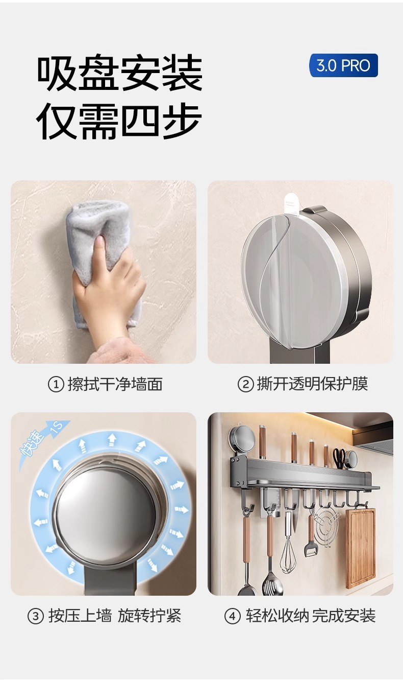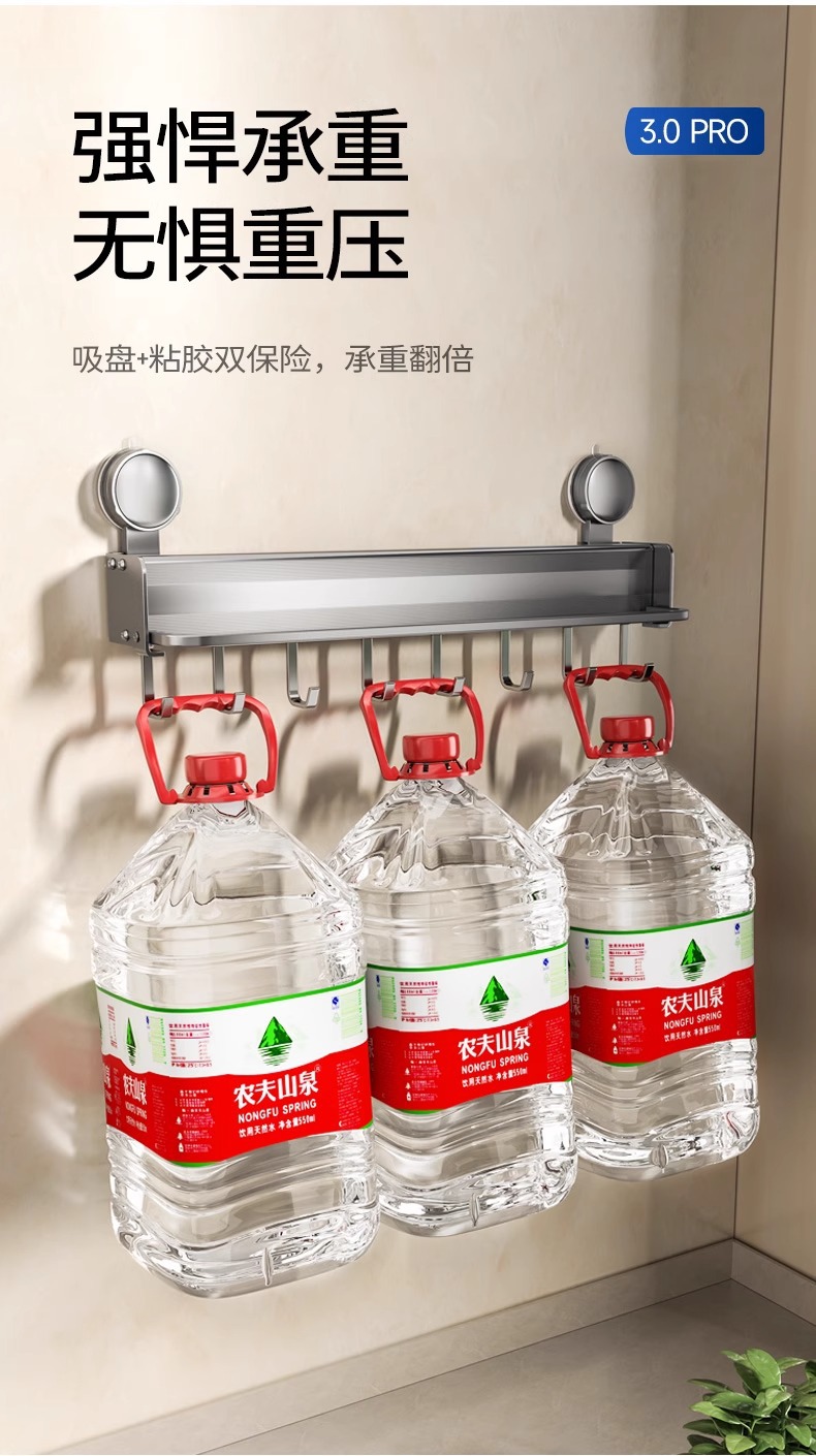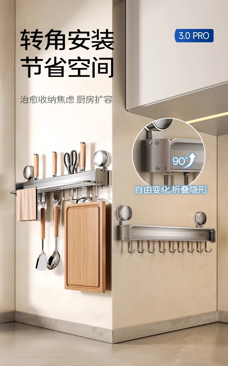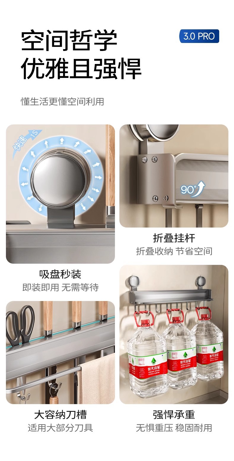 枪灰厨房挂钩架免打孔厨房置物太空铝壁挂锅铲置物架勺子厨具收纳