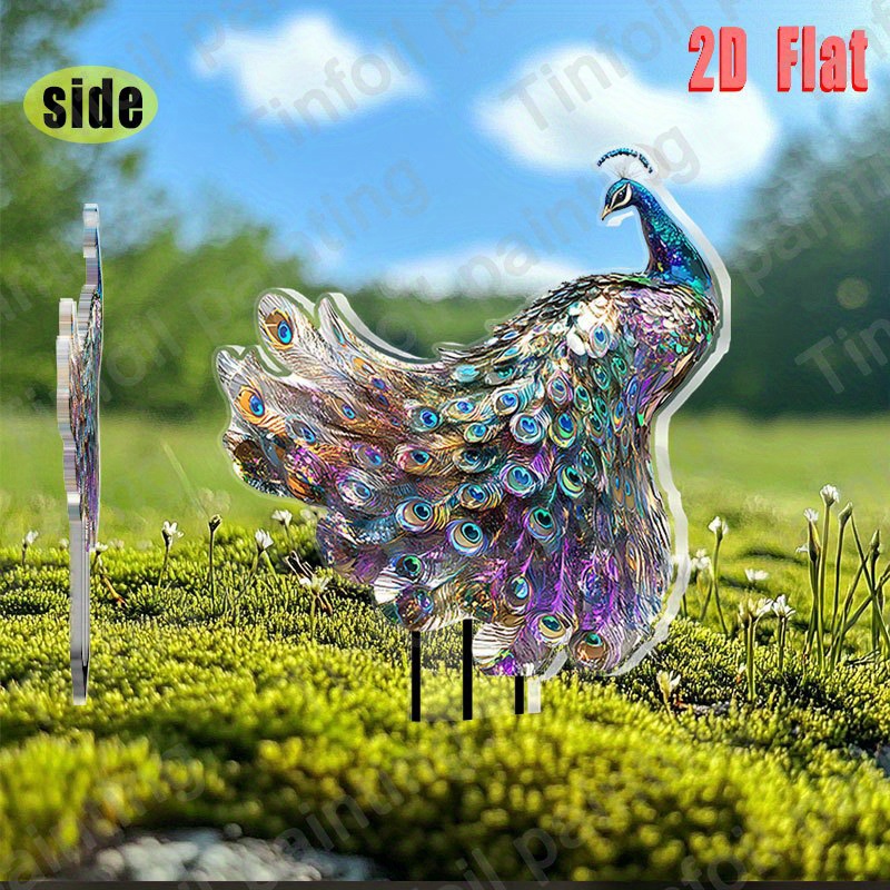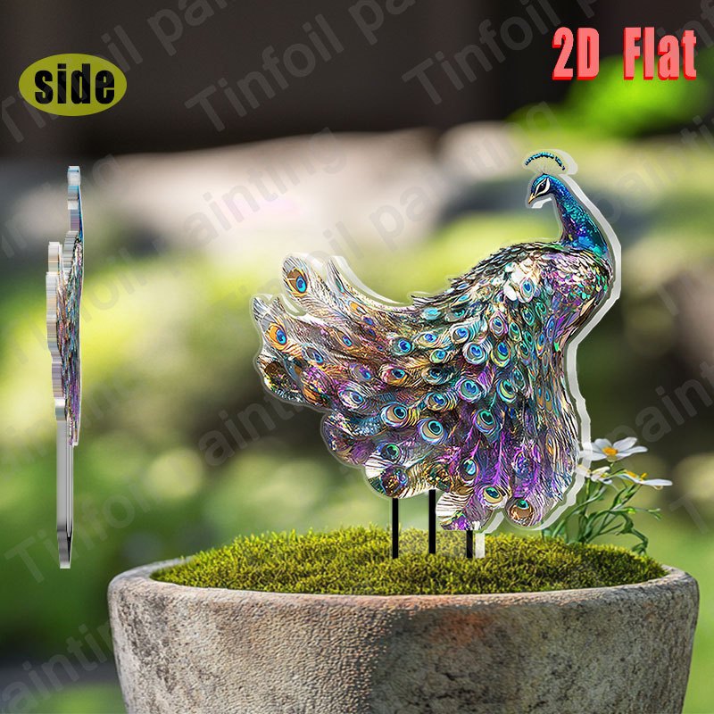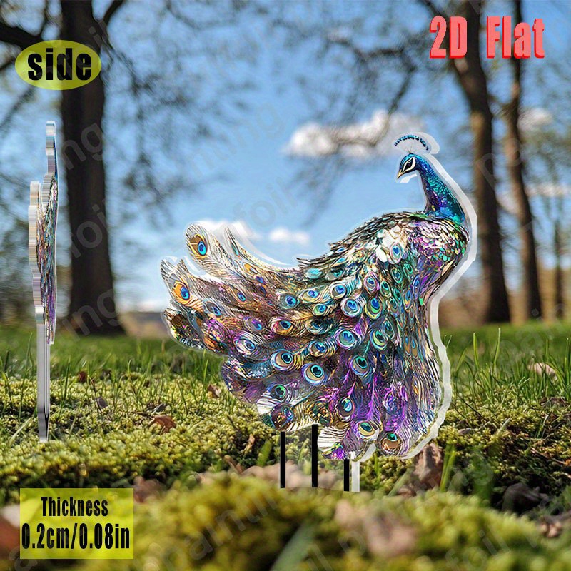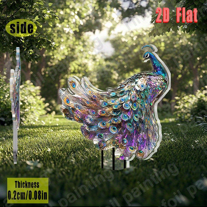 2D プレーン、1 個の孔雀アクリルガーデンステーク - 新鮮な青緑の羽、29.97x19.99cm